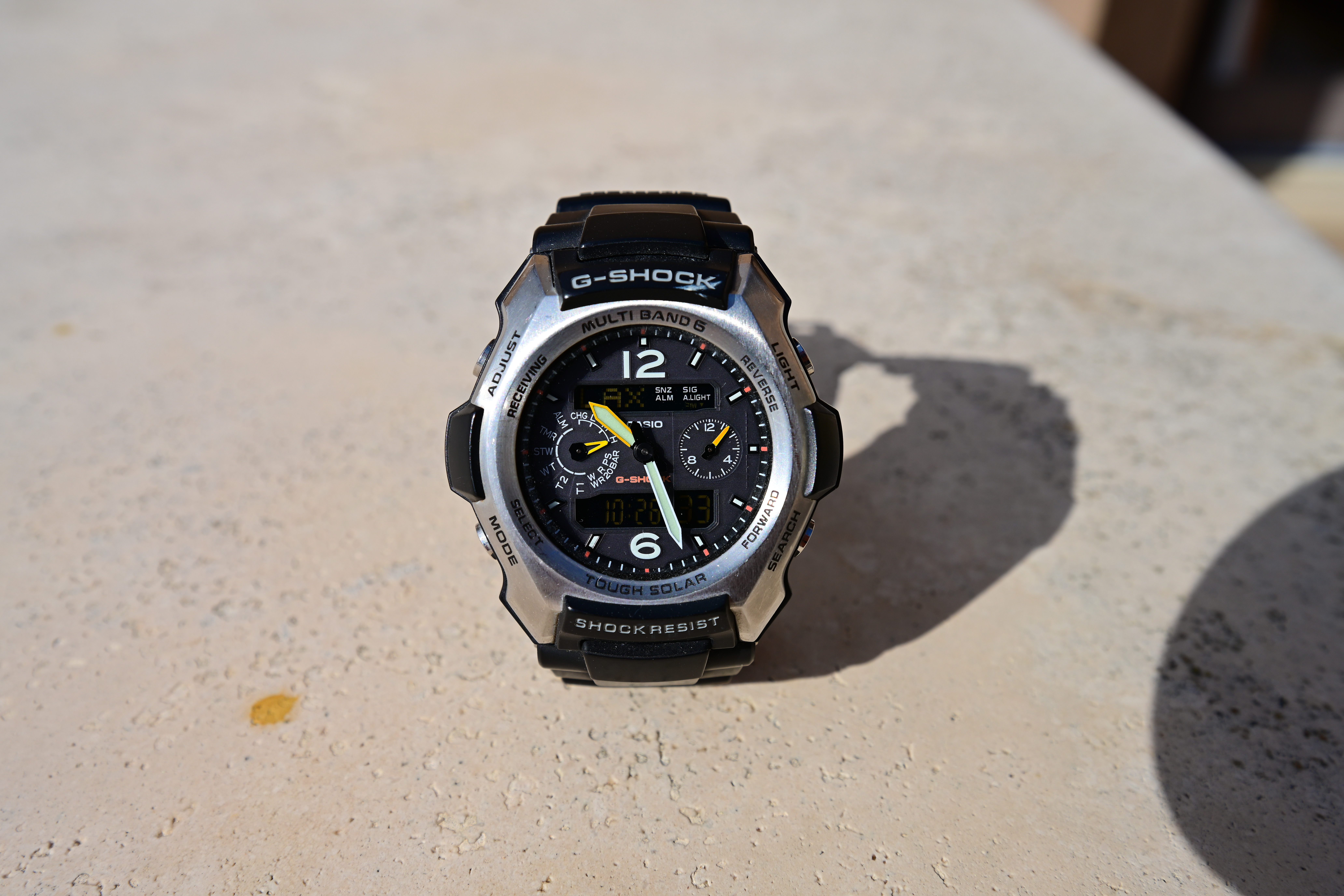 At f/8It's super-sharp at f/8: Casio G-Shock Solar Atomic Watch at close-focus distance,Tuesday, 29 November 2022. Nikon Z7 II, Nikon Z 17-28mm at 28mm at f/8 at 1/320 at Auto ISO 64 (LV 15.0). bigger or camera-original 45 MP © file (4.5 MB).