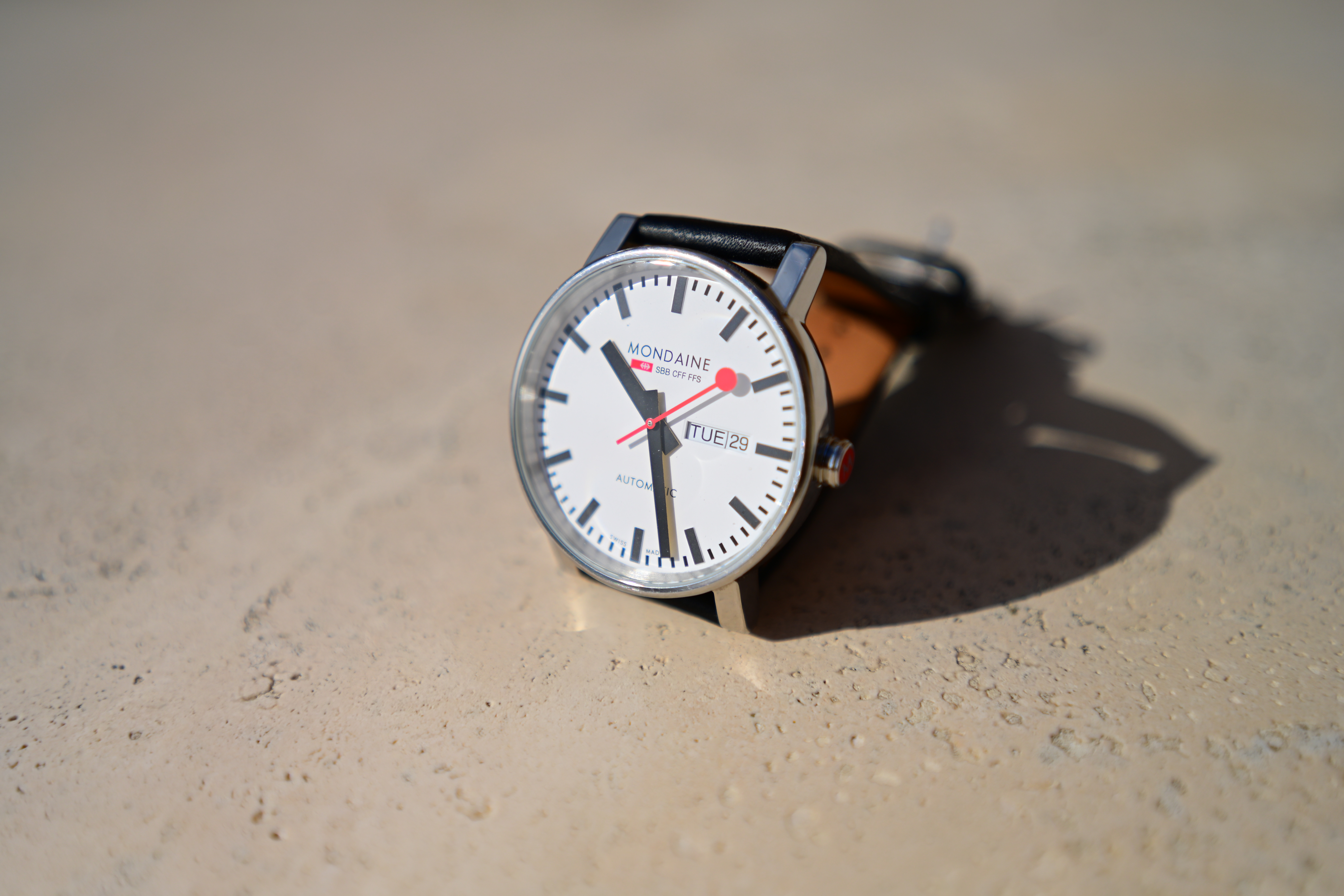 Spherochromatism performance topSpherochromatism, also called secondary spherical chromatic aberration or "color bokeh," is an advanced form of spherical and chromatic aberration in a different dimension than lateral chromatic aberration. It happens mostly in fast normal and tele lenses when spherical aberration at the ends of the color spectrum are corrected differently than in the middle of the spectrum. Spherochromatism can cause colored fringes on out-of-focus highlights, usually seen as green fringes on backgrounds and magenta fringes on foregrounds. Spherochromatism is common in fast lenses of moderate focal length when shooting contrasty items at full aperture. It goes away as stopped down. It has moderate cyan/red spherochromatism, but I never saw it anyplace other than this torture test: Mondaine A132.30348.11SBB at close-focus distance at 28mm, Tuesday, 29 November 2022. Nikon Z7 II, Nikon Z 17-28mm at 28mm wide-open at f/2.8 at 1/4,000 at Auto ISO 64 (LV 15.6). bigger or camera-original 45 MP © file (4.2 MB JPG).