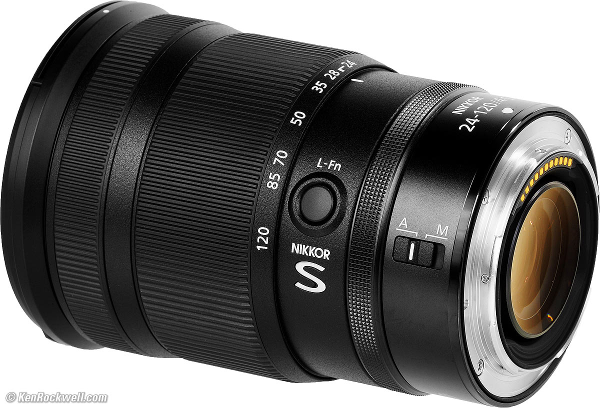 This Z 24-120mm is a marvelous general-purpose lens. It's super-sharp, handles well, is reasonably priced and covers a perfect range for just about everything I prefer it over either of the Z 24-70/2.8 or Z 24-70/4 because it zooms almost twice as far. Personally I prefer the Z 24-200mm VR over all of these because it zooms almost twice as far as this Z 24-120mm, and the Z 24-200mm VR adds image stabilization, absent on these other lenses (all these lenses work with in-camera stabilization). We all have different preferences which is why Nikon makes so many different but similar lenses. All these lenses are equally sharp in actual use; it's not 1978 anymore when lenses could vary. Today, all the Z lenses are ultrasharp. See also Nikon Z Midrange Zooms Compared. This Z 24-120mm f/4 is best for people who want a reasonably fast, sharp and great-handing all-around lens. Getting to 120mm lets you do many things, like portraiture and landscapes and product photography, far better than the very limiting 70mm ends of older lenses like the Z 24-70/2.8 and Z 24-70/4. 120mm lets you stand almost twice as far away for superior perspective rendering of three dimensional things. Just turn the front focus ring at any time for instant manual-focus override. I got my Z 24-120mm f/4 at B&H. I'd also get it at Adorama, at Amazon, or at Crutchfield, or eventually used at eBay if you know How to Win at eBay.