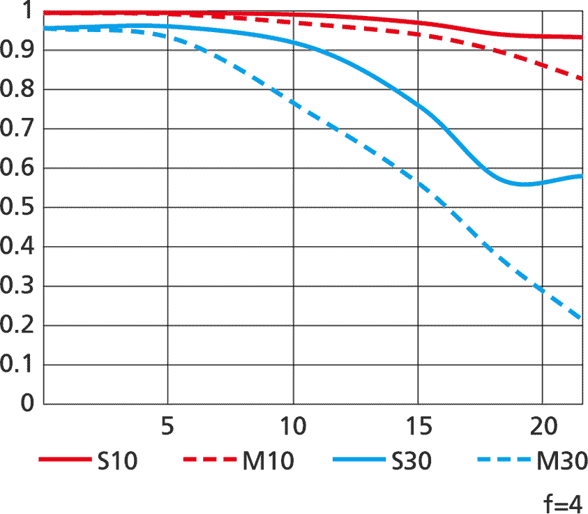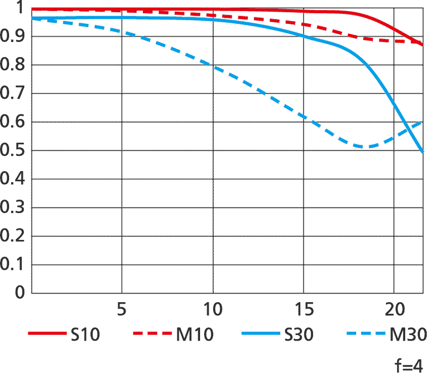 Sharpness performance topLens sharpness has nothing to do with picture sharpness; every lens made in the past 100 years is more than sharp enough to make super-sharp pictures if you know what you're doing. The only limitation to picture sharpness is your skill as a photographer. It's the least talented who spend the most time worrying about lens sharpness and blame crummy pictures on their equipment rather than themselves. Skilled photographers make great images with whatever camera is in their hands; I've made some of my best images of all time with an irreparably broken camera! Most pixels are thrown away before you see them, but camera makers don't want you to know that. If you're not getting ultra-sharp pictures with this, be sure not to shoot at f/11 or smaller where all lenses are softer due to diffraction, always shoot at ISO 100 or below because cameras become softer at ISO 200 and above, avoid shooting across long distances over land which can lead to atmospheric heat shimmer, be sure everything is in perfect focus, set your camera's sharpening as you want it (I set mine to the maximum) and be sure nothing is moving, either camera or subject. If you want to ensure a soft image with any lens, shoot at f/16 or smaller at ISO 1,600 or above at default sharpening in daylight of subjects at differing distances in the same image. People worry waaaaay too much about lens sharpness. It's not 1968 anymore when lenses often weren't that sharp and there could be significant differences among them; ever since about 2010 all new lenses are all pretty much equally fantastic. This lens is super sharp corner-to corner at every aperture at most distances, limited of course by diffraction at the very smallest apertures. It's softer at f/4 at macro distances, so stop down a little and it's back to super-sharp for macro. Nikon's MTF charts at 10 cyc/mm and 30 cyc/mm.