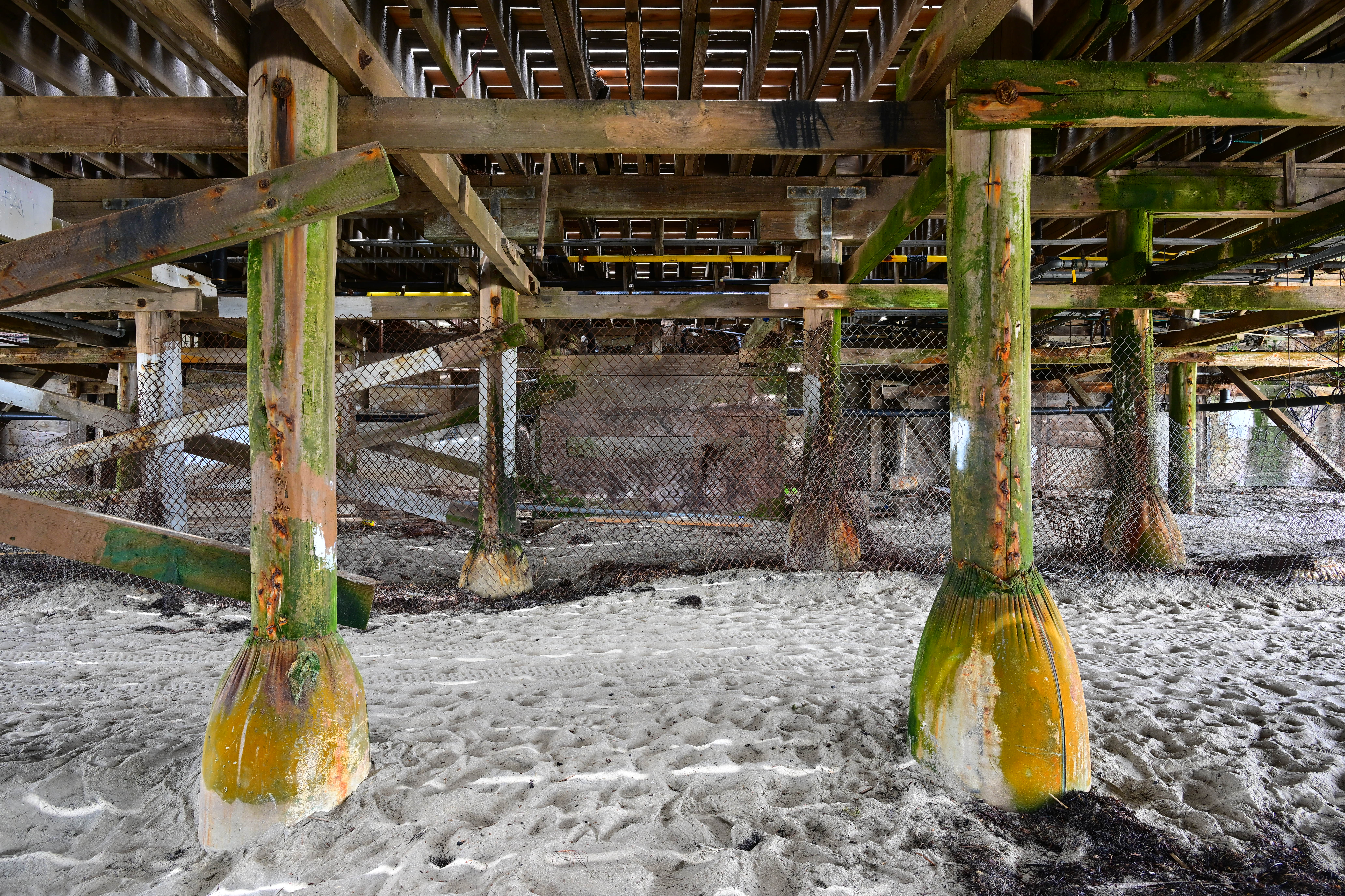 Under the Pier, Pacific Beach, California, 1:56 PM, Thursday, 02 June 2022. Nikon Z9, Z 24-120mm f/4 at 24mm at f/8 hand-held at 1/15 at ISO 400 (LV 7.9), Skylum Aurora HDR. bigger or camera-original 45 MP © JPG file (9 MB).