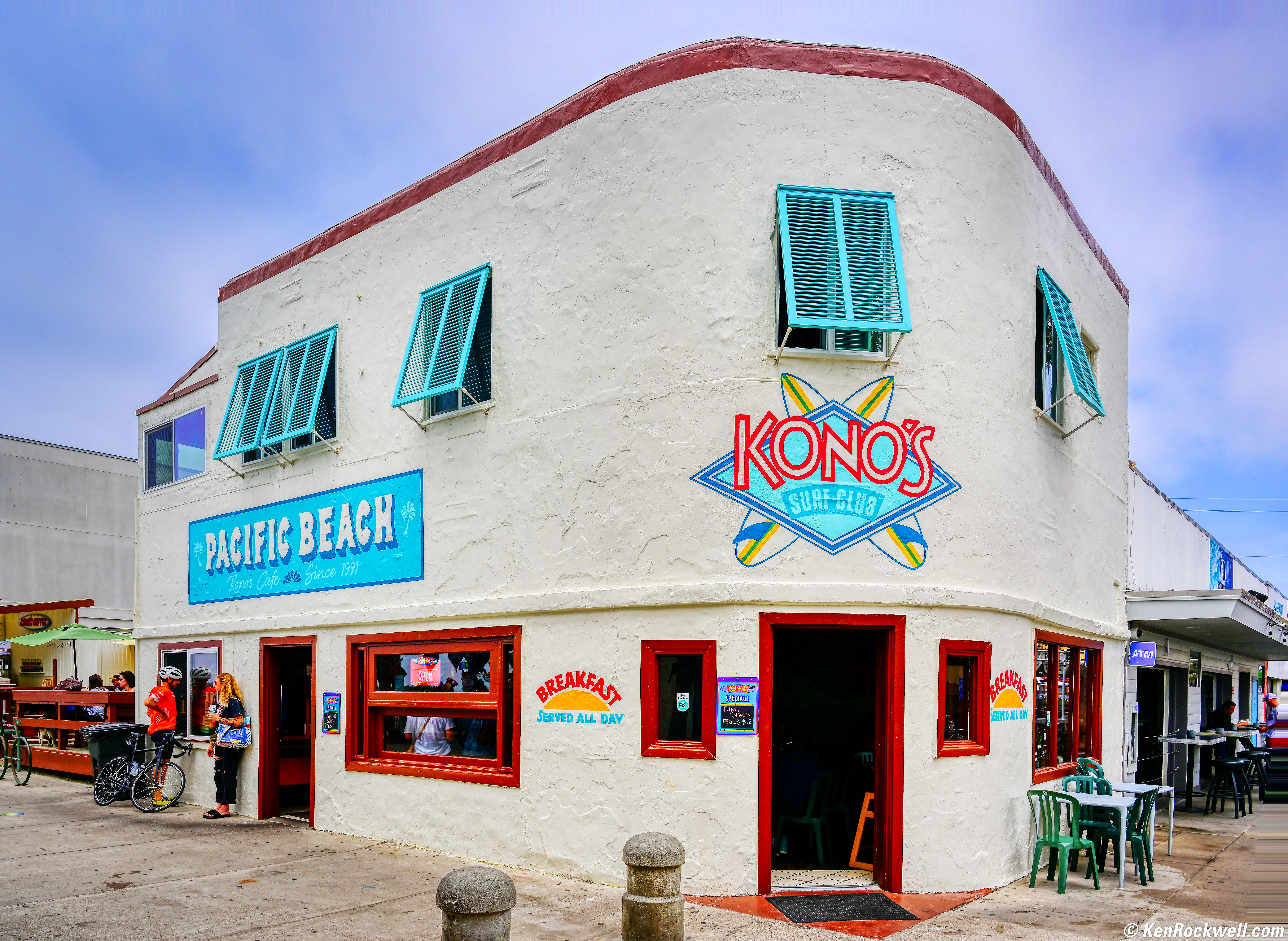 Kono's, Pacific Beach, California, 1:58 PM, Thursday, 02 June 2022. Nikon Z9, Z 24-120mm f/4 at 24mm at f/8 at 1/250 at Auto ISO 64 (LV 14.6), Skylum Aurora HDR, perspective correction in Photoshop CS6. bigger or full-resolution © JPG file (11 MB).
