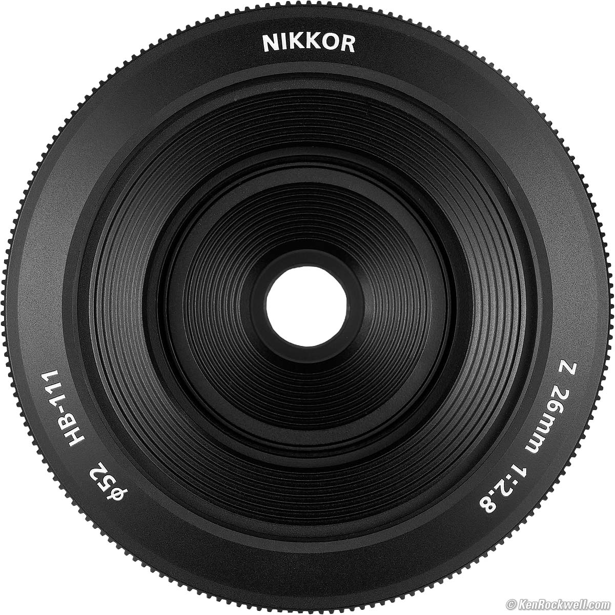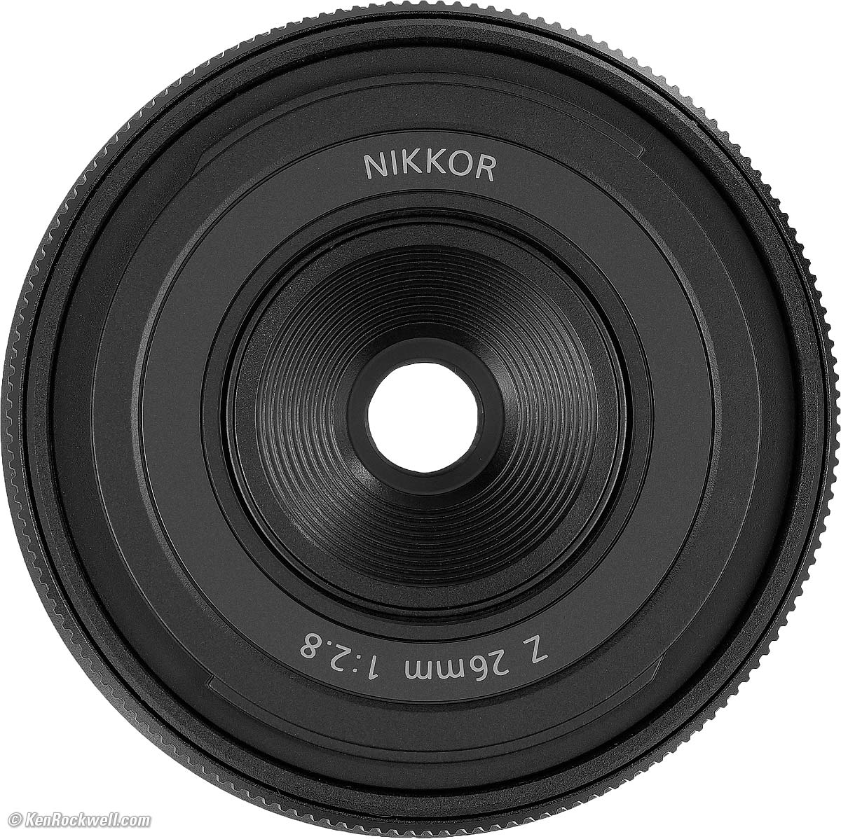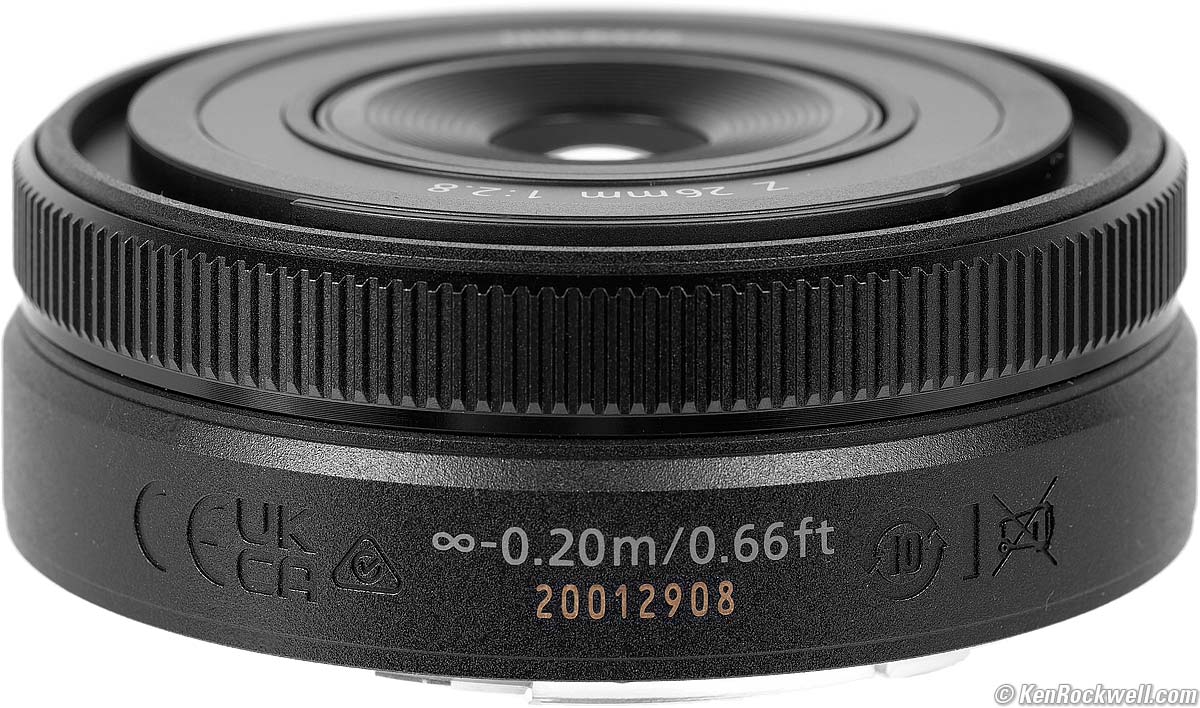 Serial NumberLaser engraved on bottom of barrel: Nikon Z 26mm f/2.8. bigger.