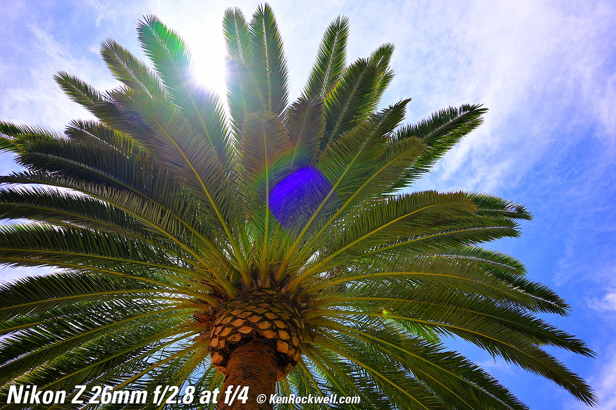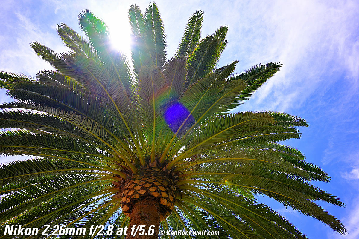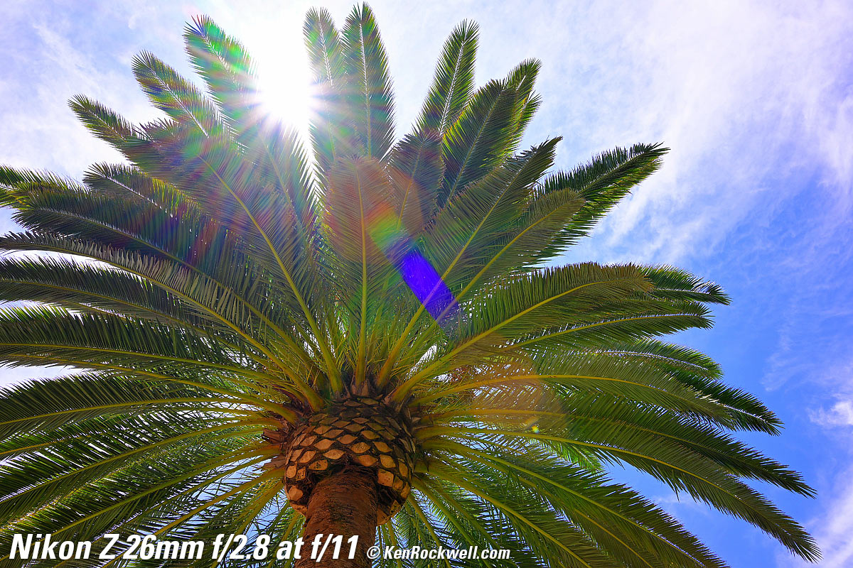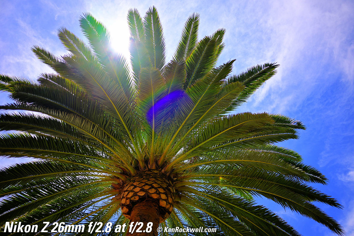 Overall performance topThe Z 26mm f/2.8 is a swell little lens if you don't mind paying for tiny; the Z 28mm f/2.8 is just about the same thing (see its review) a little larger for a lot less money. Honestly I prefer a basic zoom like the RF 24-50mm which does much more at about the same size. It's great that Nikon makes so many lenses so we can all find our favorites. À chacun son goût. It has a ratty-sounding focus motor, it's fast, sharp, has little to no distortion as shot and has decent sunstars. Autofocus performance top