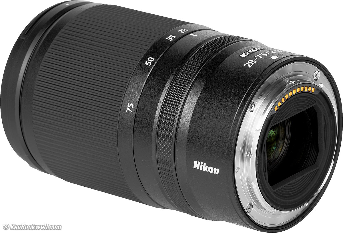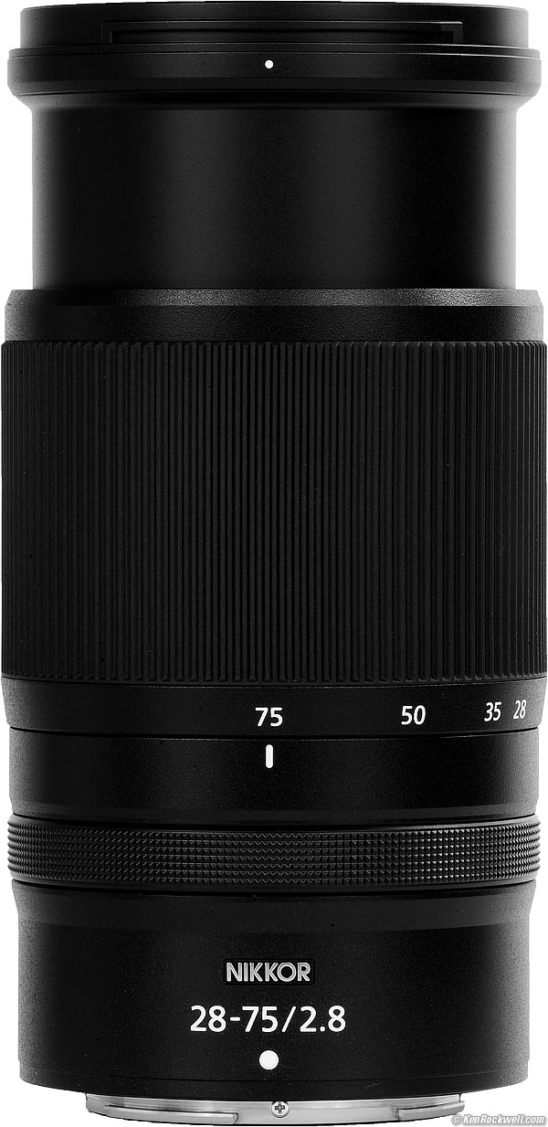Nikon Z 28-75mm f/2.8Full Frame (2022-)Sample Images Intro New Good Bad Missing Compatibility Specifications Performance Z9 Z8 Z7 II Z6 III Z6 II Z5 II Zƒ Z7 Z6 Z5 DX (APS-C): Zƒc Z50 II Z50 Z30 Z System Z Lenses All Nikon Lenses Flash Nikon Z 28-75mm f/2.8 (67mm filters, 19.9 oz./565g, 0.62'/7½"/0.19m close focus, 0.34× macro ratio, $997) bigger. I got mine at B&H. I'd also get mine at Adorama, at Amazon or at Crutchfield, or about $700 used if you know How to Win at eBay. This 100% all-content, junk-free website's biggest source of support is when you use those or any of these links to my personally approved sources I've used myself for way over 100 combined years when you get anything, regardless of the country in which you live — but I receive nothing for my efforts if you get it elsewhere. Nikon does not seal its boxes in any way, so never buy at retail or any other source not on my personally approved list since you'll have no way of knowing if you're missing accessories, getting a defective, damaged, returned, dropped, incomplete, gray-market, store demo or used lens — and all of my personally approved sources allow for 100% cash-back returns for at least 30 days if you don't love your new lens. I've used many of these sources since the 1970s because I can try it in my own hands and return it if I don't love it, and because they ship from secure remote warehouses where no one gets to touch your new lens before you do. Buy only from the approved sources I've used myself for decades for the best prices, service, return policies and selection.