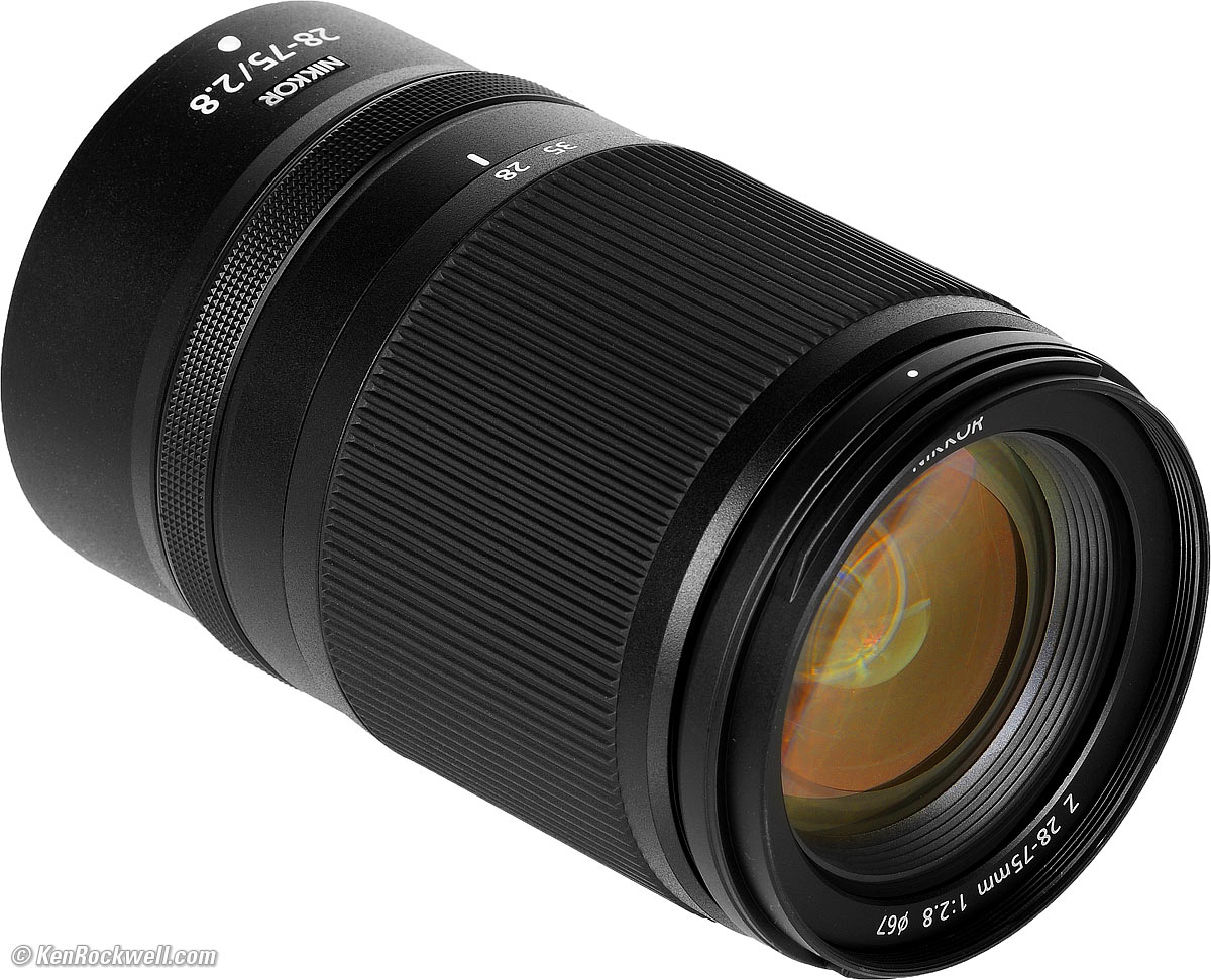 Recommendations topSample Images Intro New Good Bad Missing Compatibility Specifications Performance I got my Z 28-75mm f/2.8 at B&H. I'd also get mine at Adorama, at Amazon or at Crutchfield, or used at eBay if you know How to Win at eBay. The Z 28-75mm f/2.8 is a brilliant lens. It's fast, covers a great zoom range, focusses quickly, it's sharp, has little to no distortion, flare or ghosts as shot, has great bokeh and very good sunstars, focuses super-close, is very light weight and reasonably priced. It's a winner. The real question is do you need f/2.8? I don't, so I prefer the Z 24-120mm f/4 which has almost double the zoom range for not much more money. I rarely use f/2.8, but always need the 75-120mm range absent on this 28-75mm. Honestly I prefer the Z 24-200mm over all the rest for its even greater zoom range, but that's just me. It's great that Nikon has so many options to make us all happy. I use a clear (UV) protective filter instead of a cap so I'm always ready to shoot instantly. I only use a cap when I throw this in a bag with other gear without padding — which is never. The UV filter never gets in the way, and never gets lost, either. I use a clear (UV) protective filter instead of a cap so I'm always ready to shoot instantly. I only use a cap when I throw this in a bag with other gear without padding — which is never. The UV filter never gets in the way, and never gets lost, either. The very best protective filter is the nearly indestructible Hoya multicoated HD3 67mm UV which uses hardened glass and repels dirt and fingerprints. For less money, the B+W 67mm XS-PRO MRC-nano 010M, Nikon 67mm NC (No Color/Neutral Clear), Hoya 67mm NXT Plus UV and Hoya 67mm UV MC are all excellent filters, but the Hoya HD3 is the toughest and the best. If I was working in nasty, dirty areas, I'd use an uncoated 67mm Tiffen UV filter instead. Uncoated filters are much easier to clean, but more prone to ghosting. All these filters are just as sharp and take the same pictures, the difference is how much abuse they'll take and stay clean and stay in one piece. Since filters last a lifetime or more, there's no reason not to buy the best as it will last you for the next 50 years. Filters aren't throwaways like digital cameras which we replace every few years, like it or not. I'm still using filters I bought back in the 1970s! The Hoya HD3 stays cleaner than the others since it repels oil and dirt, and you'll be using it long after you've thrown this lens away in 50 years. I got my Z 28-75mm f/2.8 at B&H. I'd also get mine at Adorama, at Amazon or at Crutchfield, or used at eBay if you know How to Win at eBay. This 100% all-content, junk-free website's biggest source of support is when you use those or any of these links to my personally approved sources I've used myself for way over 100 combined years when you get anything, regardless of the country in which you live — but I receive nothing for my efforts if you get it elsewhere. Nikon does not seal its boxes in any way, so never buy at retail or any other source not on my personally approved list since you'll have no way of knowing if you're missing accessories, getting a defective, damaged, returned, dropped, incomplete, gray-market, store demo or used lens — and all of my personally approved sources allow for 100% cash-back returns for at least 30 days if you don't love your new lens. I've used many of these sources since the 1970s because I can try it in my own hands and return it if I don't love it, and because they ship from secure remote warehouses where no one gets to touch your new lens before you do. Buy only from the approved sources I've used myself for decades for the best prices, service, return policies and selection. Thanks for helping me help you! Ken.