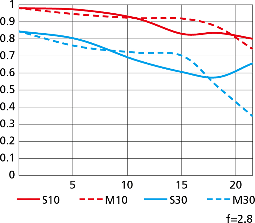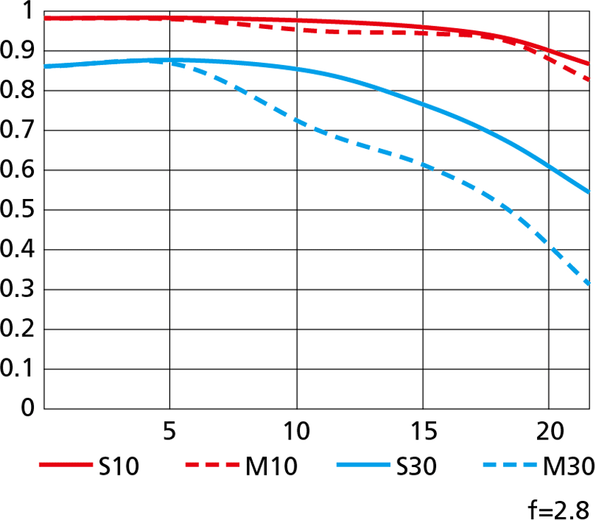 Nikon's MTF charts at 10 cyc/mm and 30 cyc/mm.