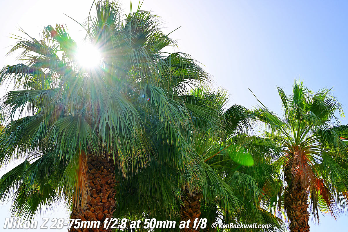 Sample Images topSample Images Intro New Good Bad Missing Compatibility Specifications Performance More samples throughout this review at Bokeh, Macro, Spherochromatism and Sunstars. These are just snapshots; my real work is in my Gallery. These are all shot hand-held as BASIC ★ JPGs; no tripods, NORMAL or FINE JPGs or RAW files were used or needed. Seven Palms Oasis, 7:27 PM, Sunday, 05 June 2022. Nikon Z9, Nikon Z 28-75mm f/2.8 at 28mm at 1/200 at Auto ISO 64, -0.7 stops exposure compensation (LV 11¼), Perfectly Clear. bigger or full-resolution 45 MP file (10 MB).