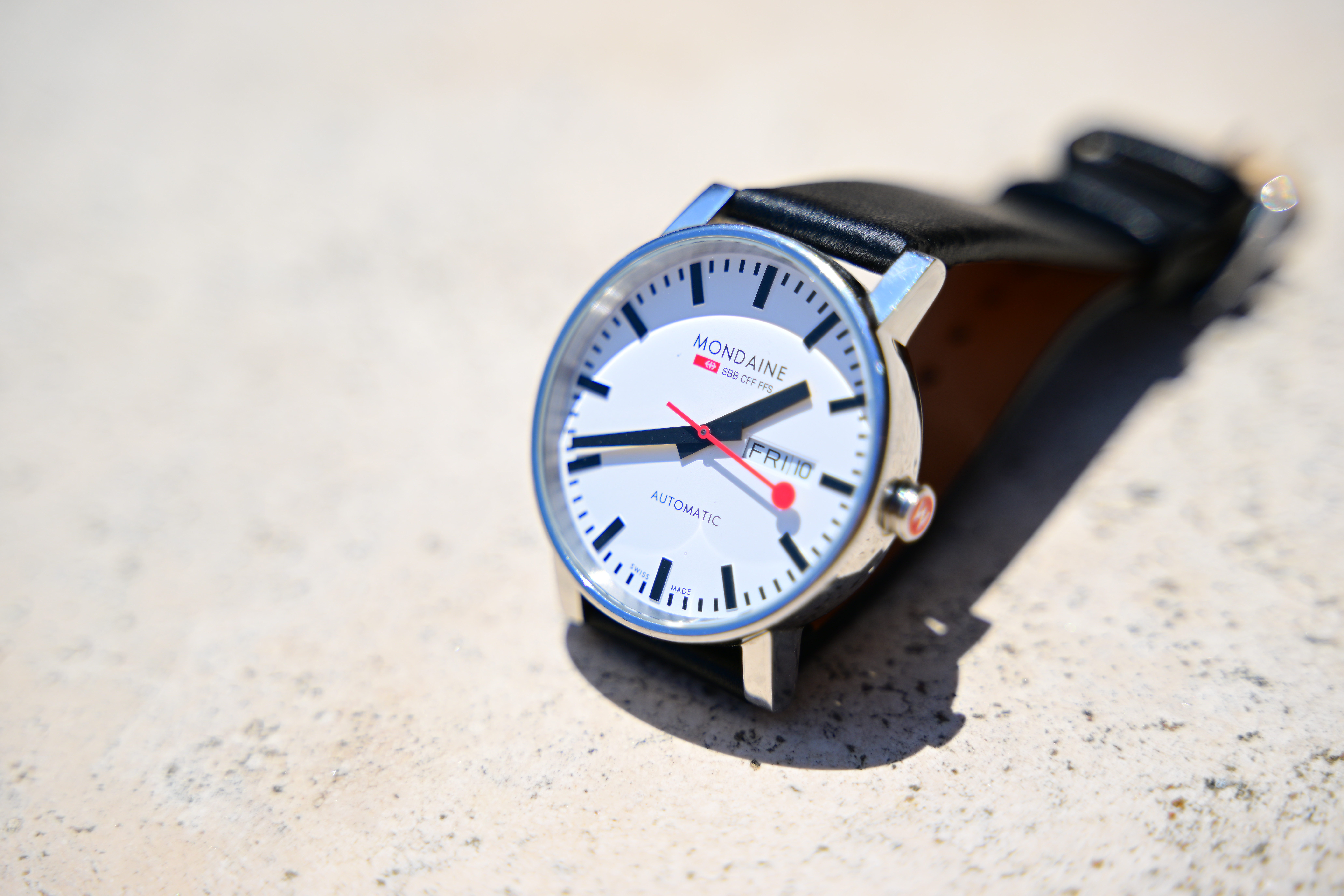 Spherochromatism performance topSpherochromatism, also called secondary spherical chromatic aberration or "color bokeh," is an advanced form of spherical and chromatic aberration in a different dimension than lateral chromatic aberration. It happens mostly in fast normal and tele lenses when spherical aberration at the ends of the color spectrum are corrected differently than in the middle of the spectrum. Spherochromatism can cause colored fringes on out-of-focus highlights, usually seen as green fringes on backgrounds and magenta fringes on foregrounds. Spherochromatism is common in fast lenses of moderate focal length when shooting contrasty items at full aperture. It goes away as stopped down. It has moderate to minor blue/yellow spherochromatism: Mondaine A132.30348.11SBB at close-focus distance, 10 June 2022. Nikon Z9, Nikon Z 28-75mm f/2.8 at 75mm wide-open at f/2.8 at 1/1,600 at Auto ISO 64 with +1.0 stop exposure compensation (LV 14.3). bigger or camera-original 45 MP © file (3.5 MB JPG).