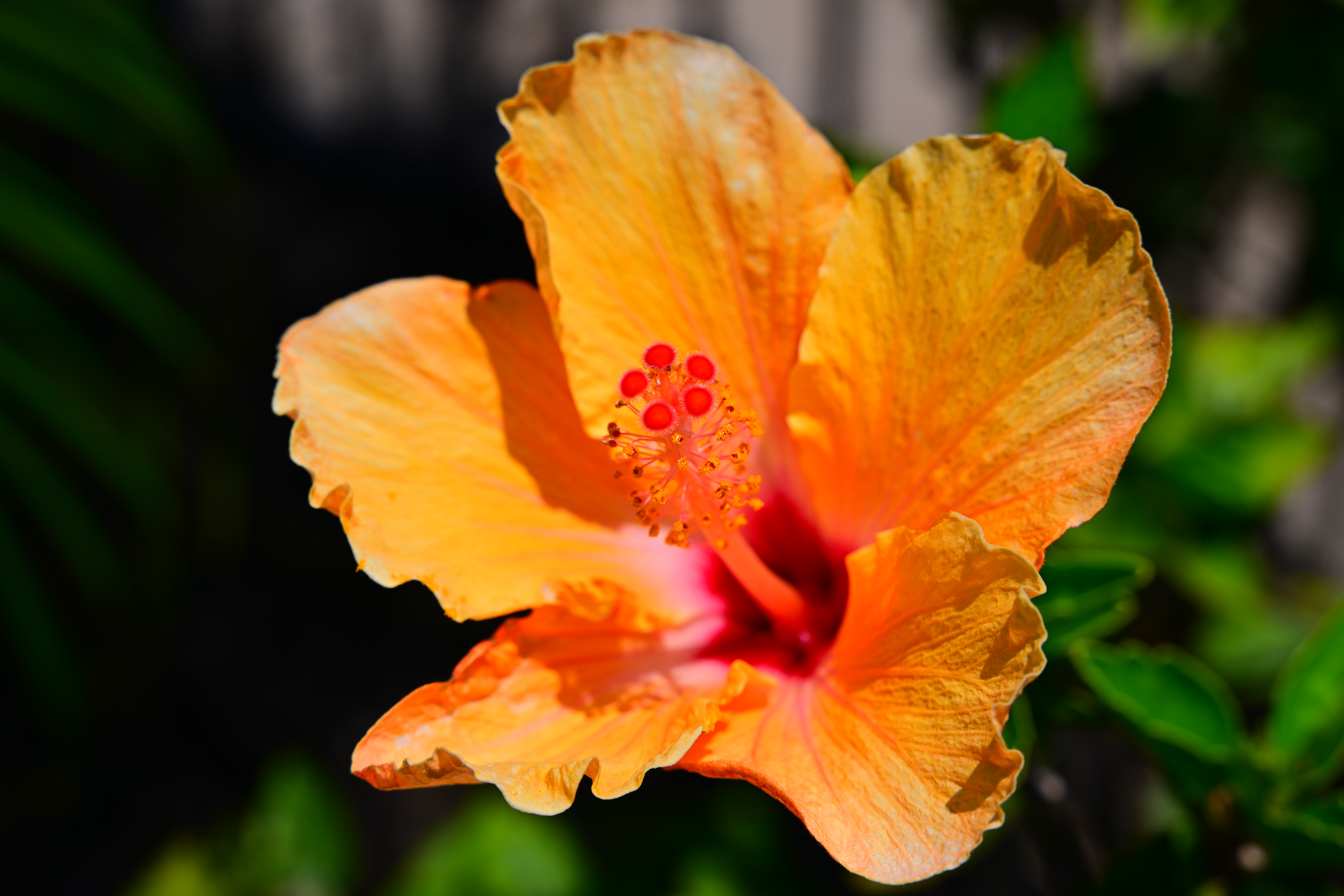 Orange Hibiscus, 10:24 AM, Friday, 10 June 2022. Nikon Z9, Nikon Z 28-75mm f/2.8 at 75mm at 1/320 at Auto ISO 64 (LV 15.0), Perfectly Clear. bigger or camera-original 45 MP © JPG file (4 MB).