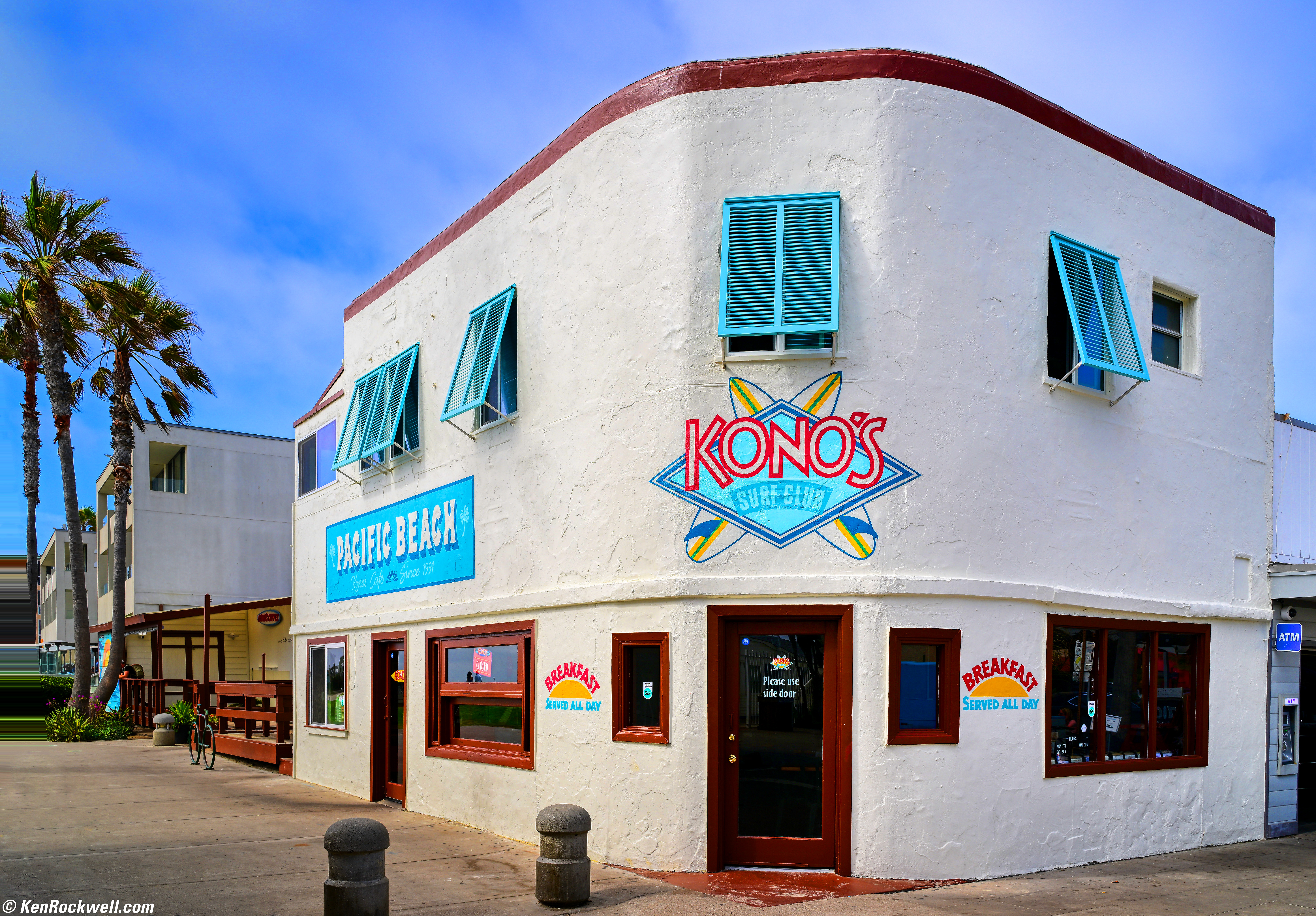 Kono's Pacific Beach, California, 4:19 PM, Friday, 10 June 2022. Nikon Z9, Nikon Z 28-75mm f/2.8 at 28mm at f/8 at 1/160 at Auto ISO 64, +0.7 stops exposure compensation (LV 14.0), Luminar Aurora HDR, perspective correction in Photoshop CS6. bigger or full resolution 45 MP file (11 MB).