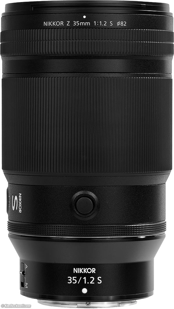 Name specifications topNikon calls this the NIKKOR Z 35mm f/1.2 S:NIKKOR: Nikon's brand name for almost all their lenses since 1932. Z: For Nikon's mirrorless cameras, only. S: Subliminally suggests sexual satisfaction. The "S" designation has no other purpose than subliminal seduction; Nikon and electronics and automobile and every kind of marketer have been using letters like "S" and "X" in model numbers since the 1940s for this same reason. Nikon called their first 1946 rangefinder lens mount the "S" mount, then went whole-hog to the "F" SLR mount in 1959, used "S" again when they updated their AI lenses to AI‑S in 1983, then they created AF‑S lenses in 1998, and here it is again.