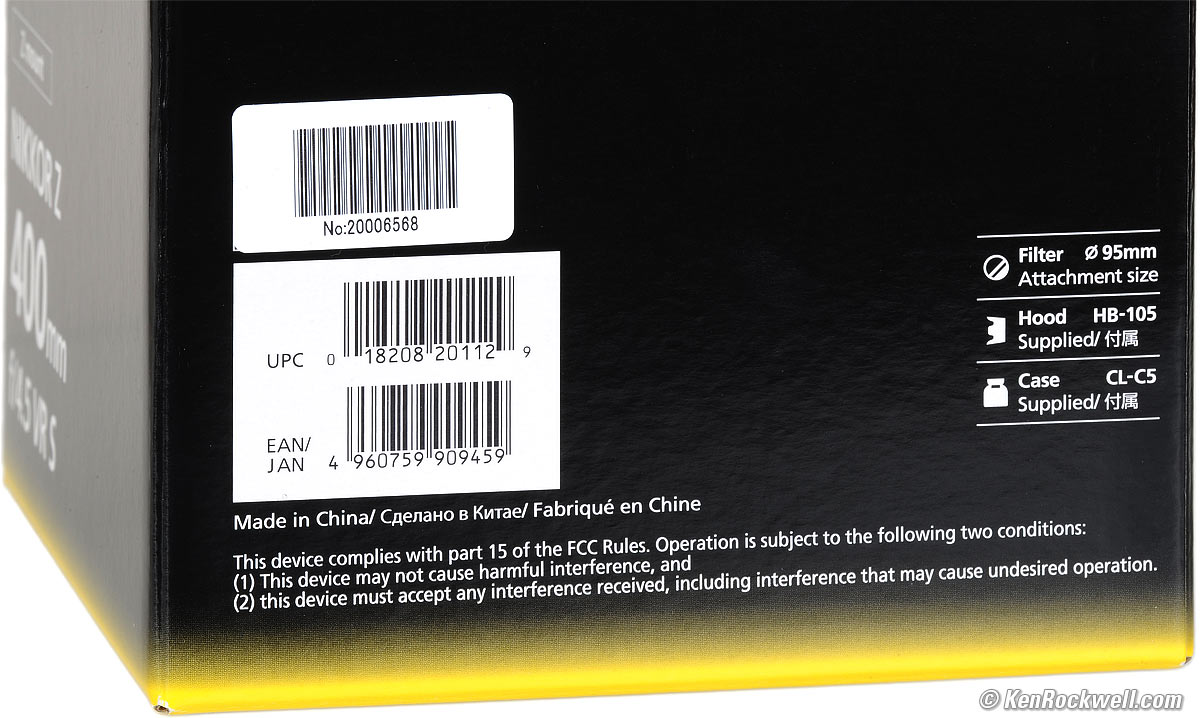 Quality specifications topNikon Z 400mm f/4.5 VR. bigger. Made in China.