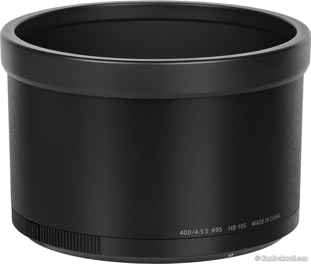 IdentityPrinted around front barrel of lens just behind the hood mount, also "NIKKOR 400/4.5 S" molded-as-engraved on top rear of barrel.