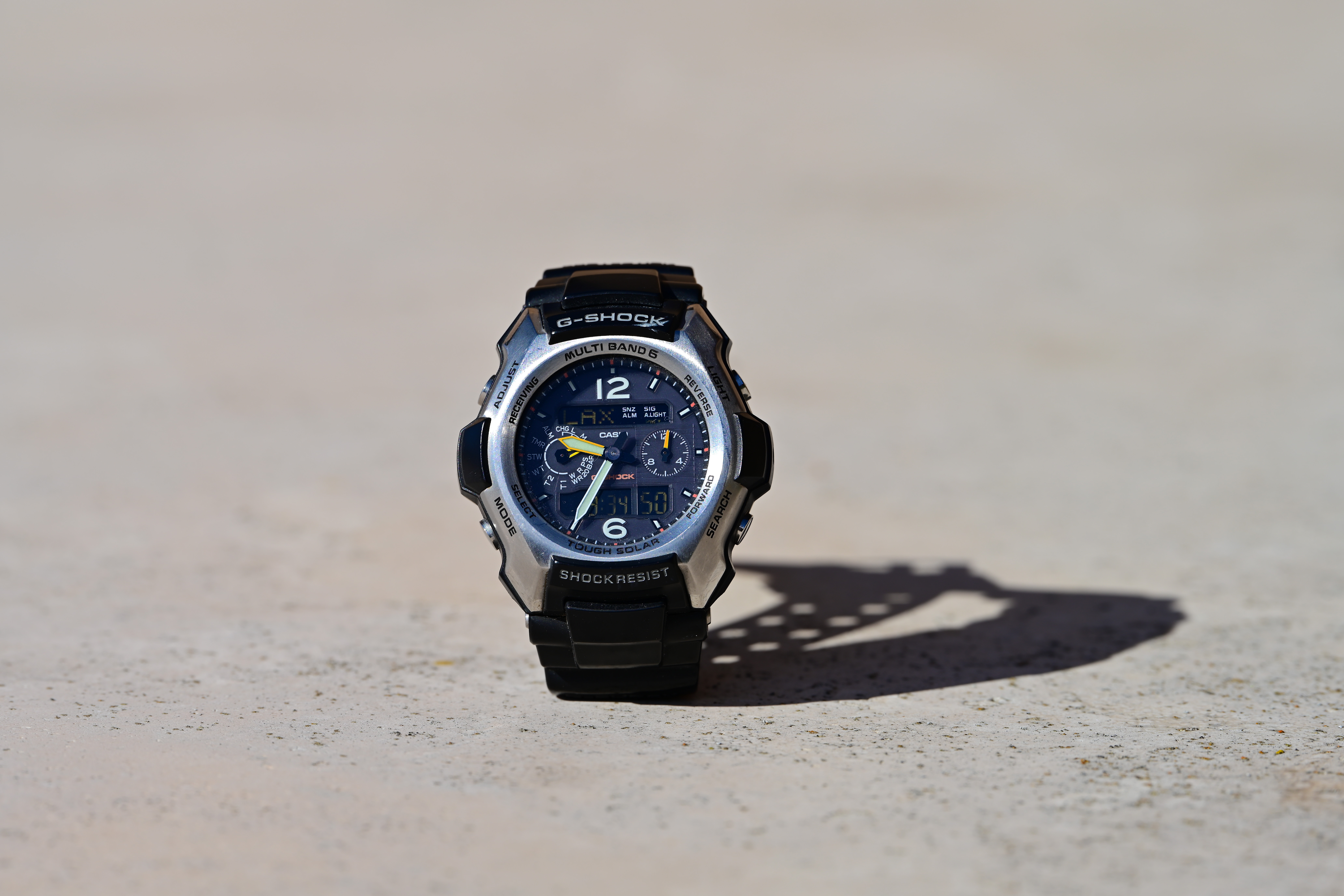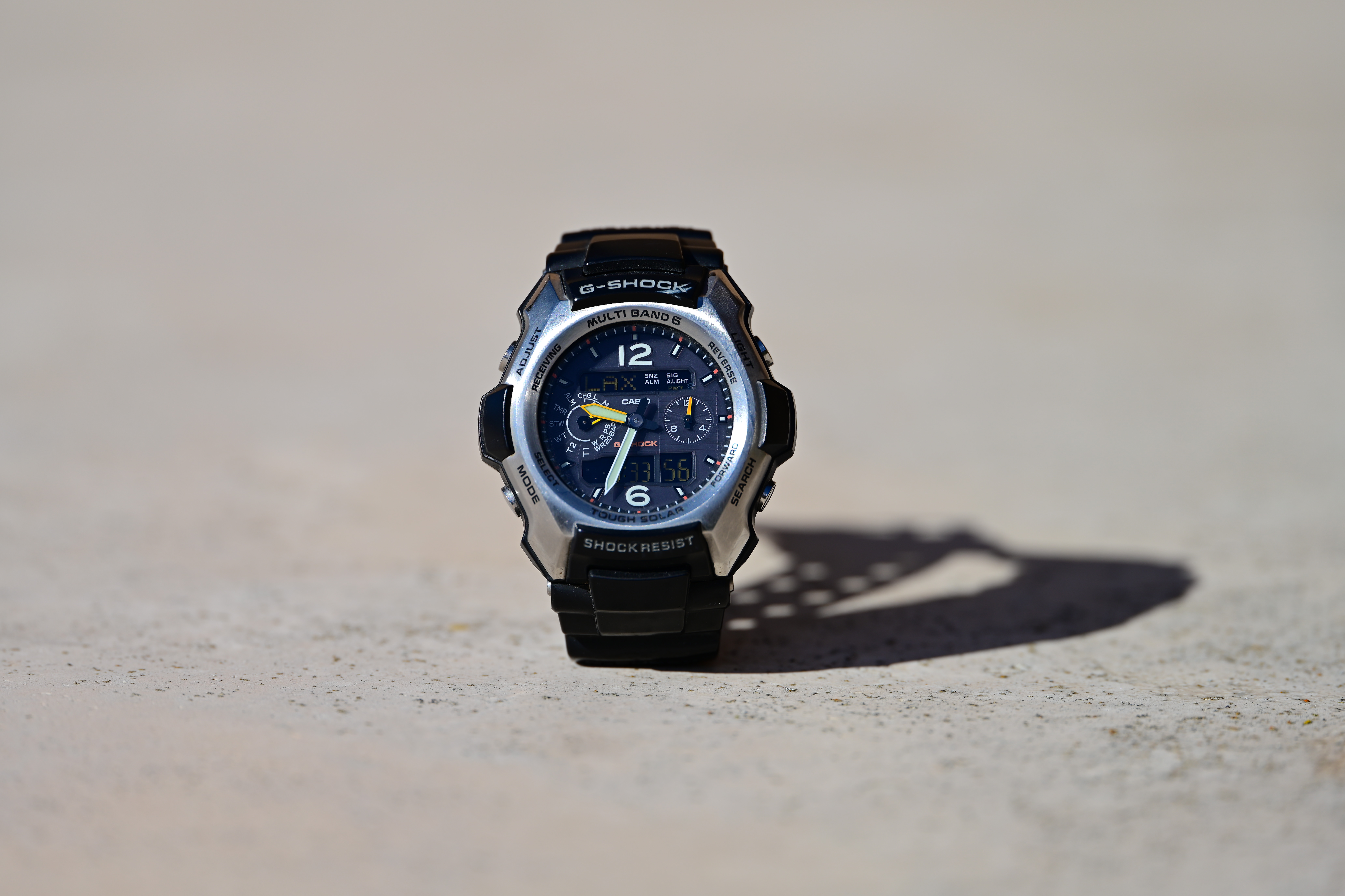 At f/8The only thing that changes as stopped down is that there is more in focus; it was already super-sharp wide-open. Just look at the texture in the brushed metal in the cropped image: Casio G-Shock Solar Atomic Watch at close-focus distance at f/8, 09 November 2022. Nikon Z7 II at 1/160 at ISO 32 (LV 15.0). bigger or camera-original © file.