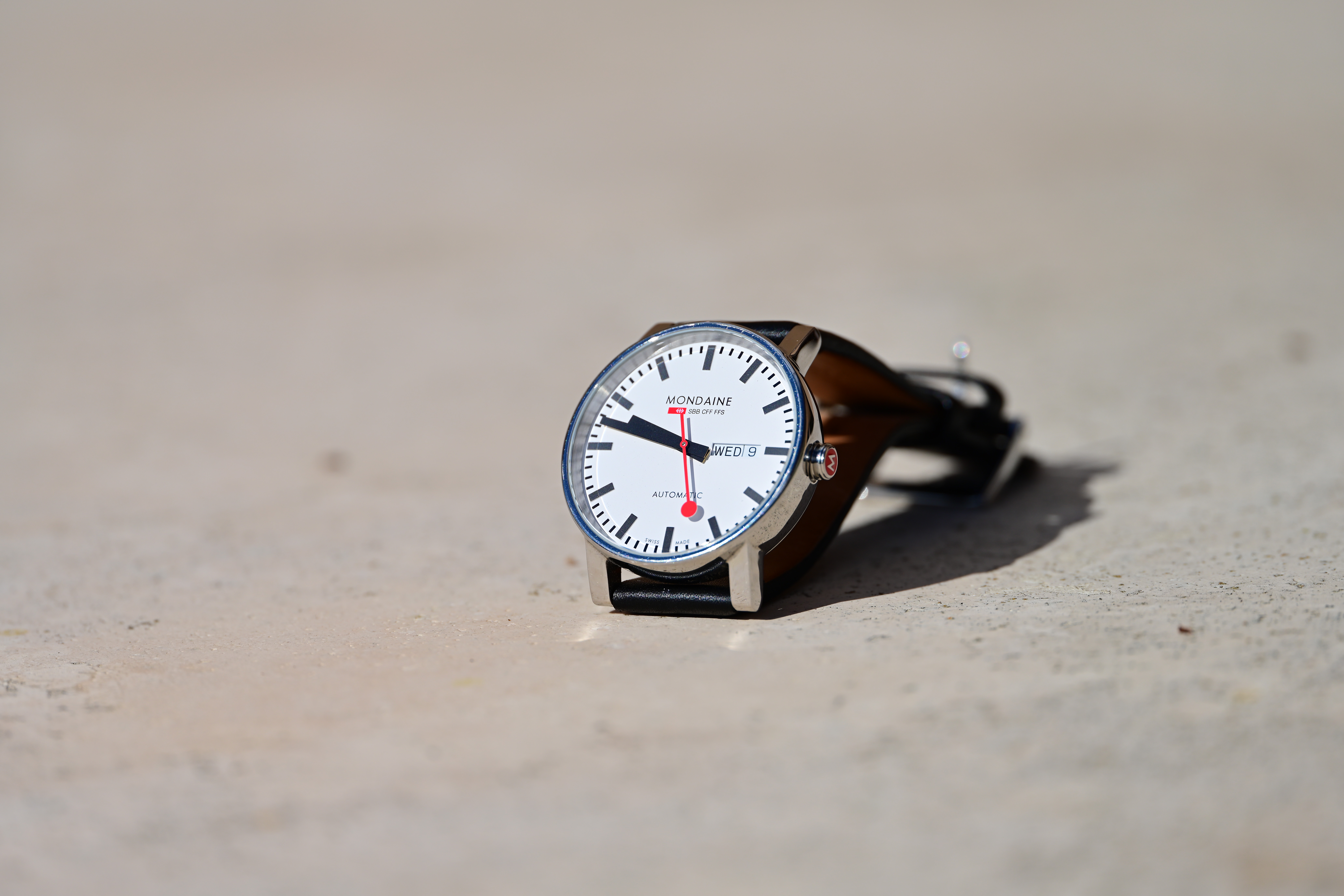 Spherochromatism performance topSpherochromatism, also called secondary spherical chromatic aberration or "color bokeh," is an advanced form of spherical and chromatic aberration in a different dimension than lateral chromatic aberration. It happens mostly in fast normal and tele lenses when spherical aberration at the ends of the color spectrum are corrected differently than in the middle of the spectrum. Spherochromatism can cause colored fringes on out-of-focus highlights, usually seen as green fringes on backgrounds and magenta fringes on foregrounds. Spherochromatism is common in fast lenses of moderate focal length when shooting contrasty items at full aperture. It goes away as stopped down. Miraculously it has no significant spherochromatism, which optically is the most outstanding thing about this lens. All lenses today, especially fixed ultra-teles, are ultra sharp, but spherochromatism still effects most other lenses — but not the Z 400/4.5 VR: Mondaine A132.30348.11SBB at close-focus distance at f/4.5, 09 November 2022. Nikon Z7 II at 1/1,250 at Auto ISO 64, +0.7 stops exposure compensation (LV 15.3). bigger or camera-original © file.