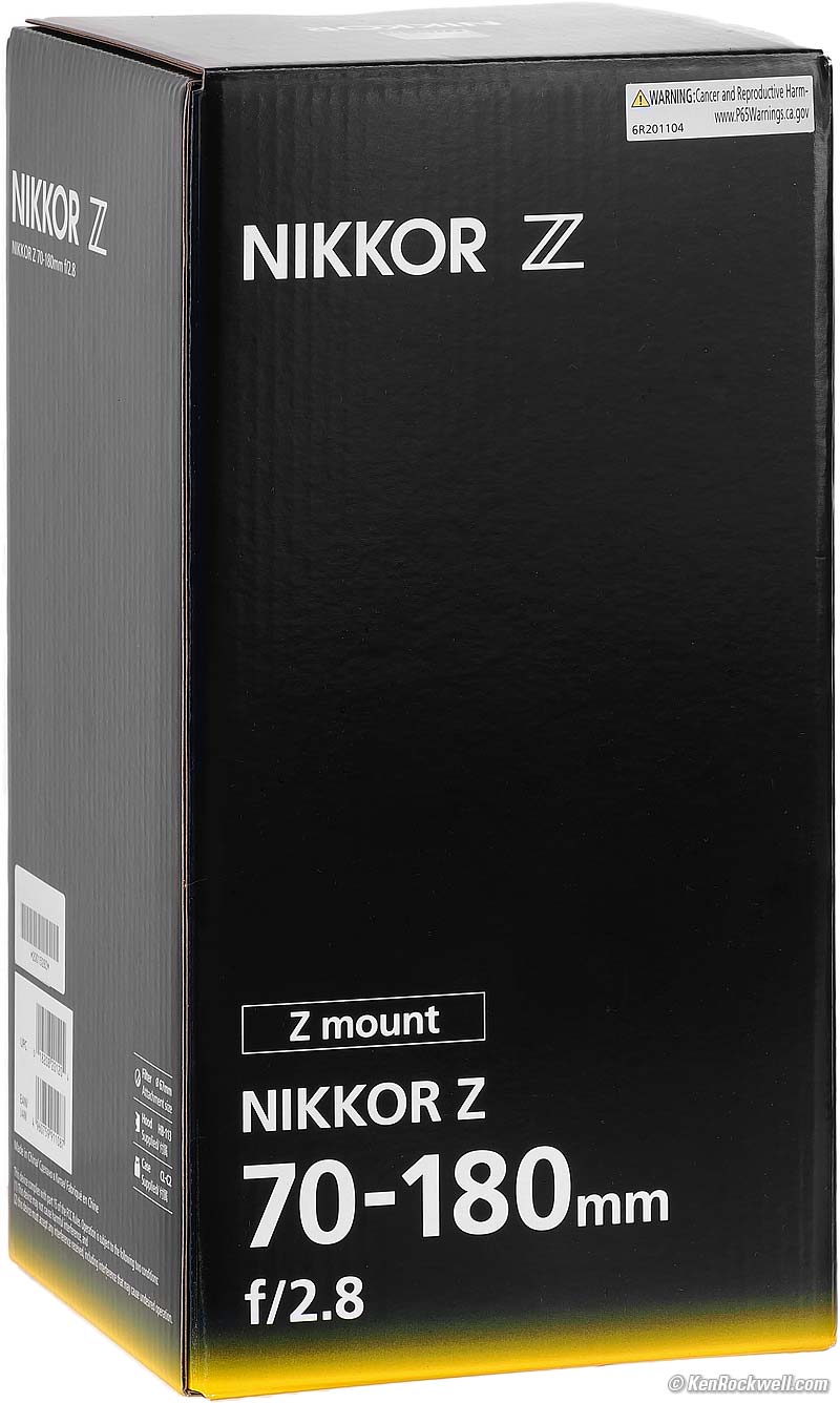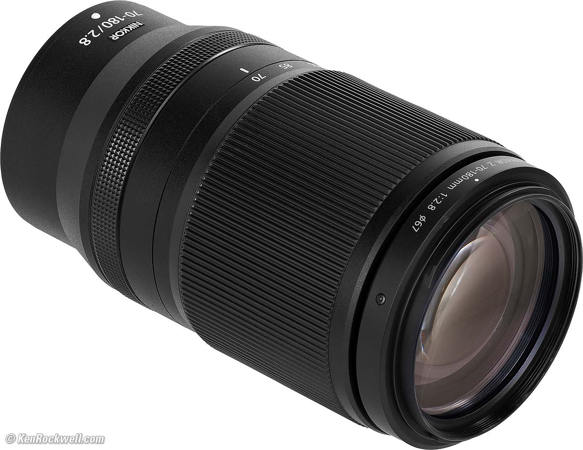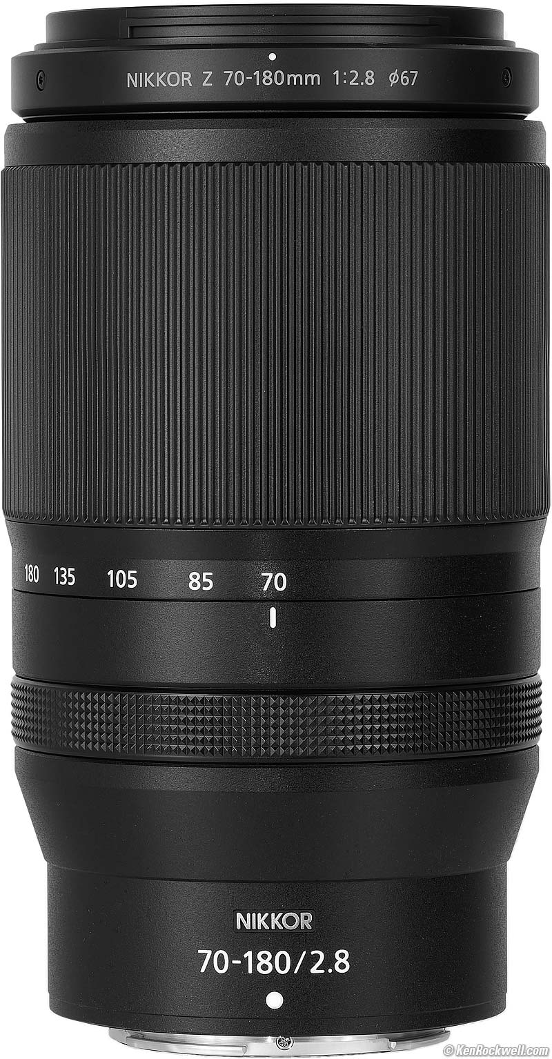 Nikon Z 70-180mm f/2.8 (67mm filters, 28.0 oz./795g, 0.9~2.8'/0.27~0.85m close focus, 0.48× macro ratio, $1,247). bigger. I got mine at B&H. I'd also get it at Adorama, at Amazon, or used at eBay if you know How to Win at eBay.