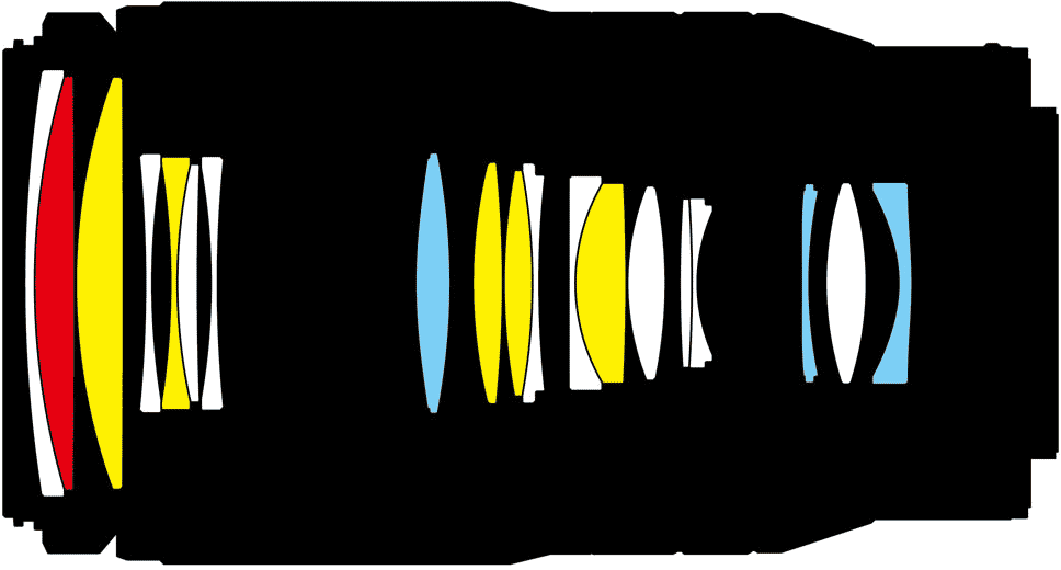 1 Super ED extra-low dispersion element, which helps reduce secondary axial chromatic aberration.