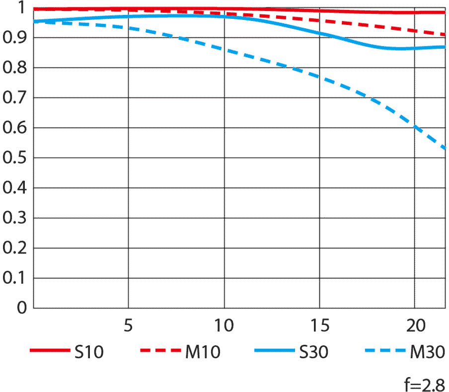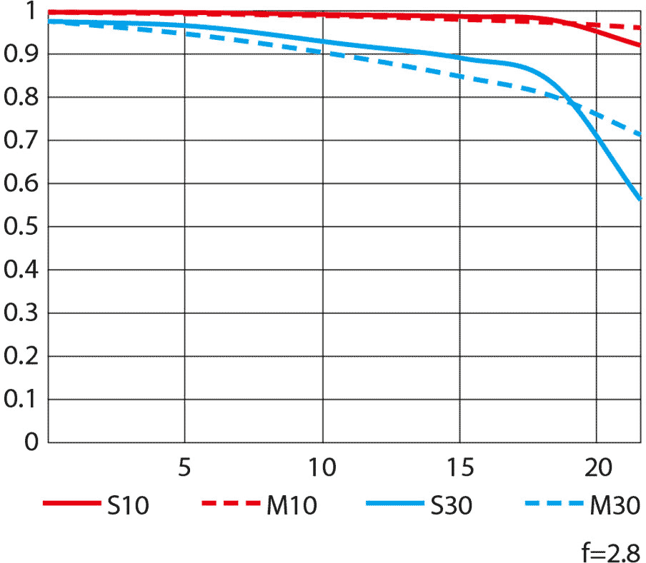 Nikon's MTF charts at 10 cyc/mm and 30 cyc/mm.