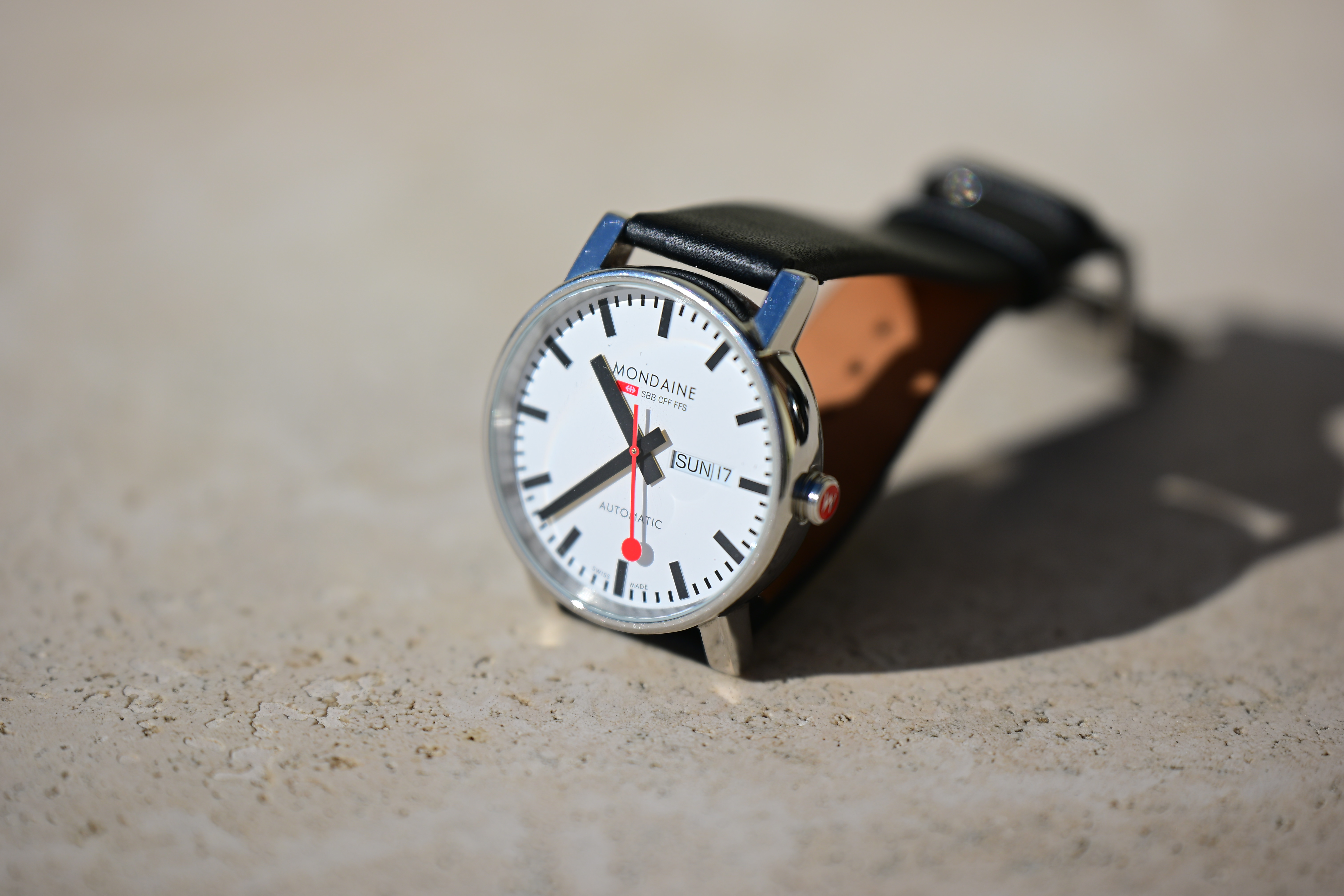 Mondaine A132.30348.11SBB at close-focus distance at , January 2024. bigger or camera-original © file.