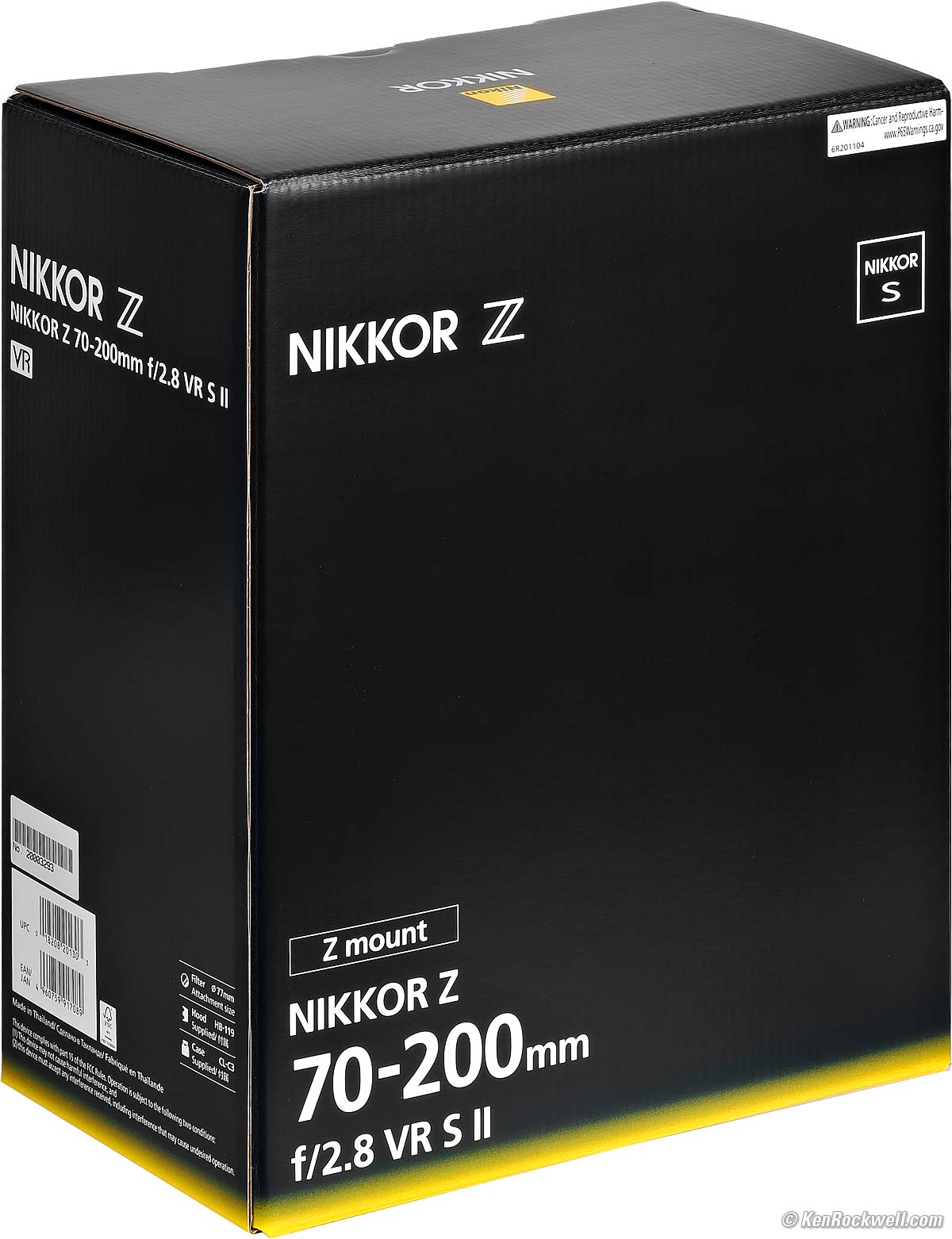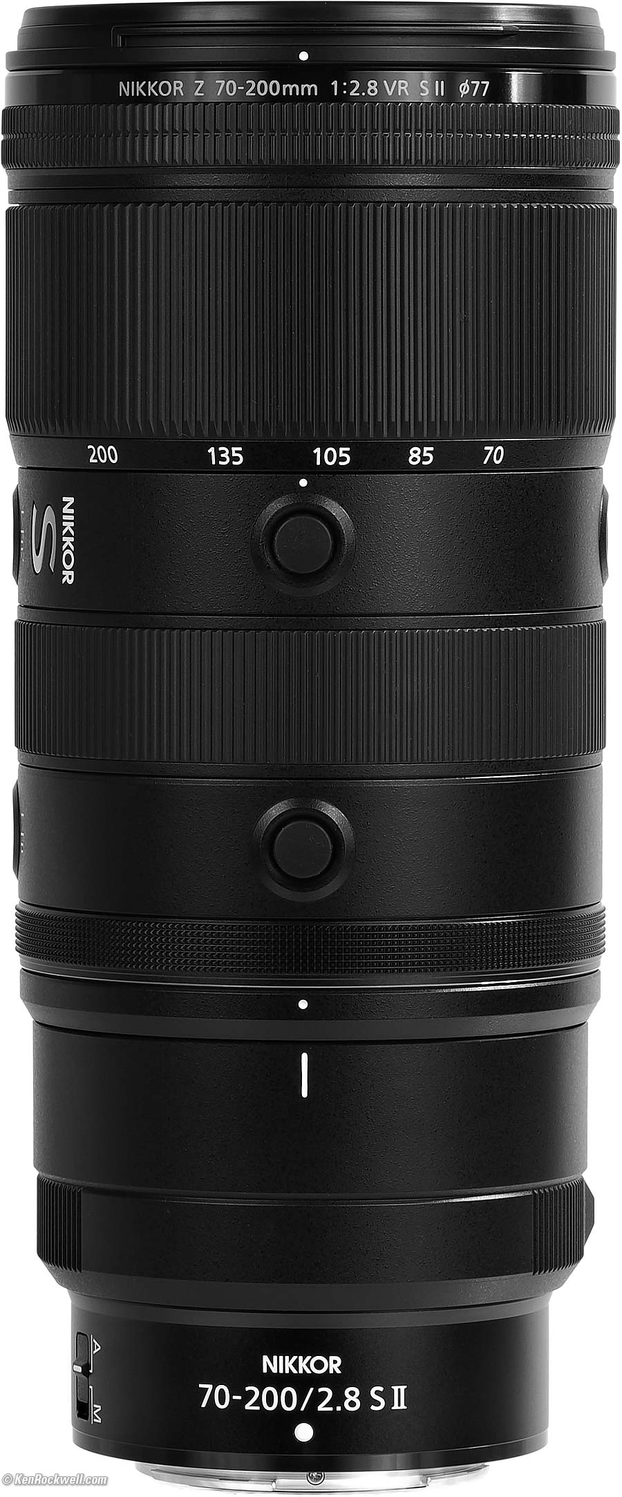 Nikon Z 70-200mm f/2.8 VR IIVoice-Coil Focus Motor (VCM; 2026 ~ today)Sample Images Intro New Good Bad Missing Specifications USA Version Performance Compared User's Guide Recommendations Z9 Z8 Z7II Z6III Z6II Zƒ Z7 Z6 Z5II Z5 ZR Zƒc Z50II Z50 Z30 Z System Z Lenses All Nikon Lenses Flash Nikon Z 70-200mm f/2.8 VR II VCM (77mm filters, 36.2 oz./1,025g with polyprophylactic ring as shown or 41.5 oz./1,177g with tripod collar, 1.2'/0.38m ~ 2.6'/0.8m close focus, 0.25×~0.3× macro ratio, $3,197). bigger. I got mine at B&H. I'd also get it at Adorama, or get it used at eBay (How to Win at eBay), or get it used at KEH. This 100% all-content, junk-free website's biggest source of support is when you use those or any of these links to my personally approved sources I've used myself for way over 100 combined years when you get anything, regardless of the country in which you live — but I receive nothing for my efforts if you take the chance of getting it elsewhere. Nikon does not seal its boxes in any way, so never buy at retail or any other source not on my personally approved list since you'll have no way of knowing if you're missing accessories, getting a defective, damaged, returned, dropped, incomplete, gray-market, store demo or used lens — and my personally approved sources allow for 100% cash-back returns for at least 30 days if you don't love your new lens. I've used many of these sources since the 1970s because I can try it in my own hands and return it if I don't love it, and because they ship from secure remote warehouses where no one gets to touch your new lens before you do. Buy only from the approved sources I've used myself for decades for the best prices, service, return policies and selection.