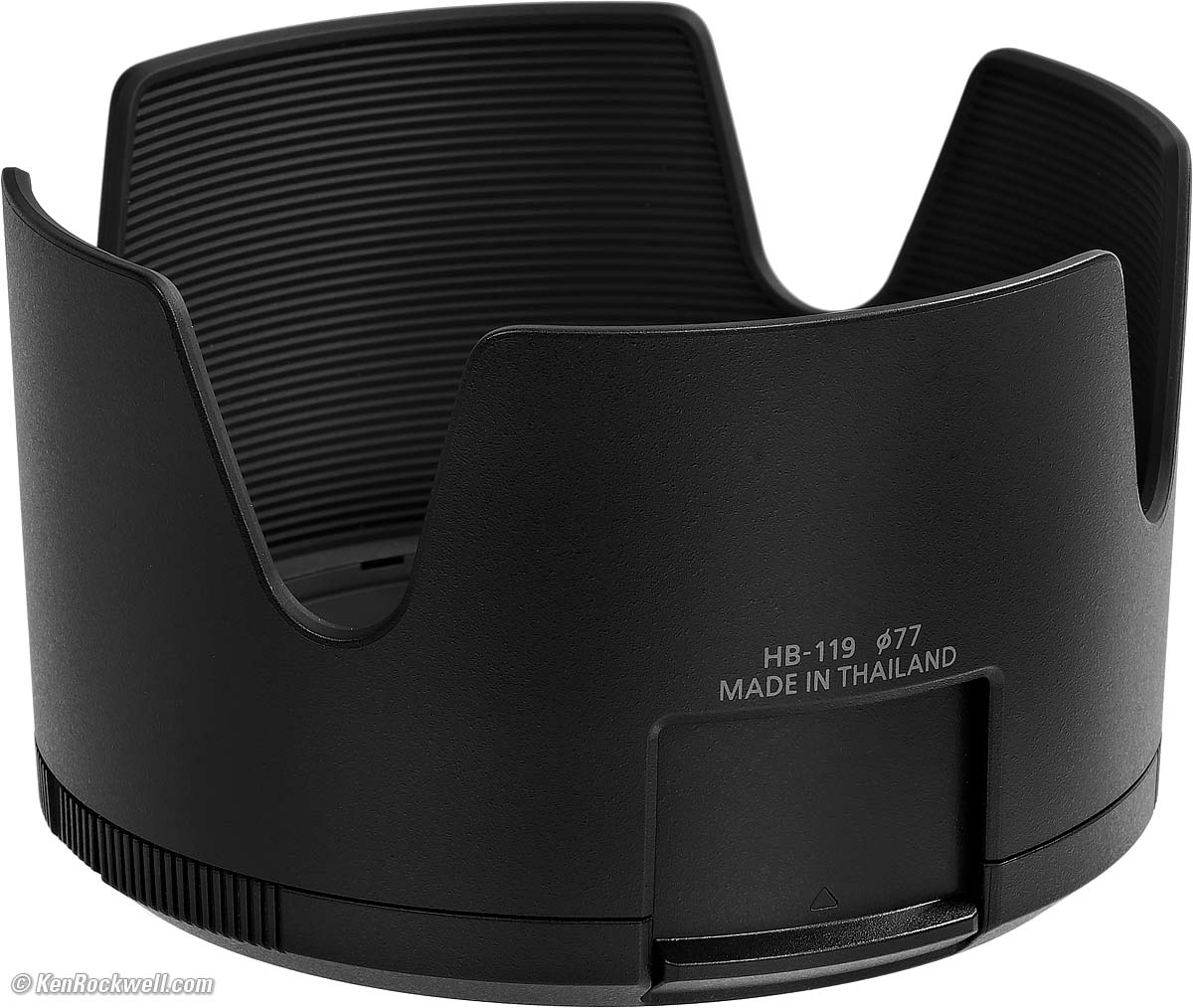 Hood specifications topHB-119 hood for Z 70-200mm f/2.8 VR II. bigger. HB-119 hood, is included. Its interior seems much more black than older hoods, as if painted by an ultrablack pigment. Cool.