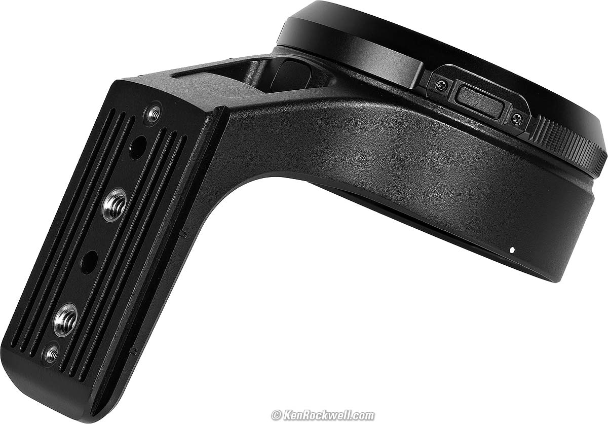 Tripod Collars user's guide topThe lens arrives with no rear attachment, just naked bayonet lugs: As Shipped. bigger. Both the tripod collar and the polyprophylactic ring are shipped separately in the accessories box inside the larger box. You may attach either to the back of the lens, or save an ounce just shoot it without either. I'd not leave it naked, the polyprophylactic ring only weighs an ounce and makes it much more comfortable for hand-holding and protects the bayonet couplings from damage — the whole point of what seems like just a trim ring. Both of these use bayonet attachments, and they both have locks so they won't come off unless you want them to.