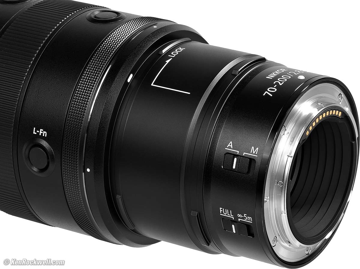 Versus the Incomparable AF-S 70-200mm f/2.8 VR FL compared topPersonally if I wanted top performance for a fat discount, I'd get the extraordinary pro-level AF-S 70-200mm f/2.8 VR FL and use it with my FTZ/2 adapter. I still consider the AF-S 70-200mm f/2.8 FL to be the greatest 70-200mm lens ever created, and it costs much less than this new Z lens The AF-S 70-200mm f/2.8 VR FL is Nikon's last top pro f/2.8 zoom ever, built like a tank and Made-in-Japan. It has extraordinary optics, also with a Fluorite element. I don't consider any of Nikon's Z 70-200mm lenses as pro-tough; they all feel pretty disposable and use offshore manufacturing to save Nikon money — while Nikon charges far more for the crappier Z lenses than the fantastic AF-S 70-200mm f/2.8 VR FL!