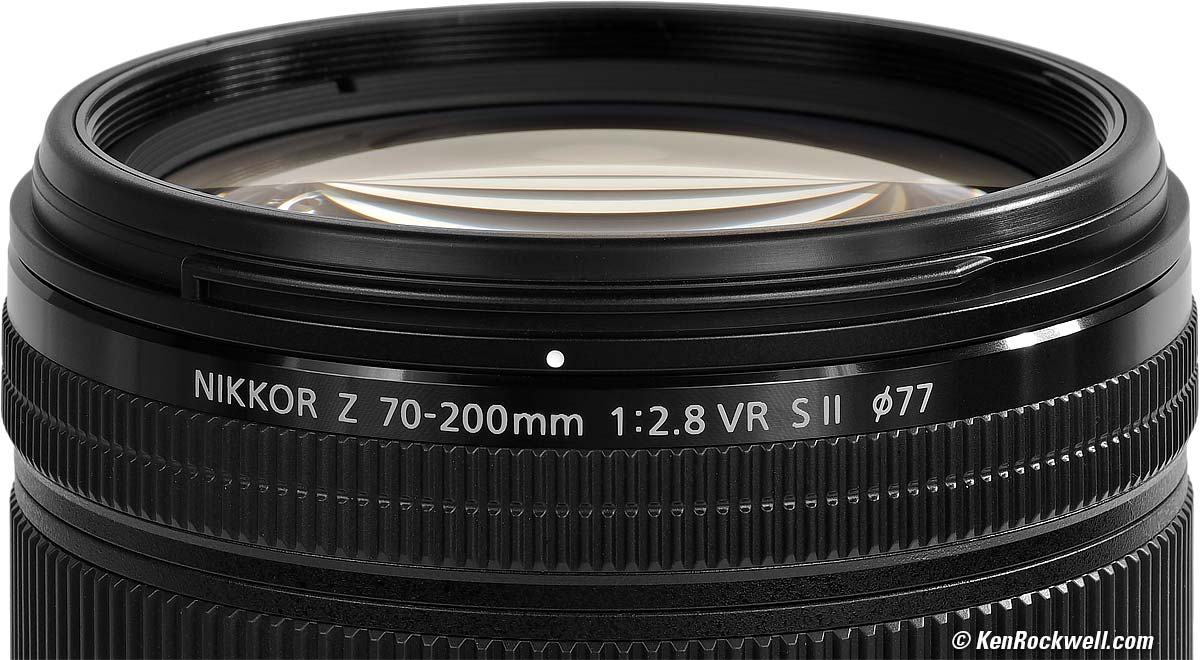 Identity mechanics performance topNikon Z 70-200mm f/2.8 VR II. bigger. Laser engraved around front of lens, also "70-200/2.8 S II" printed on top of barrel.