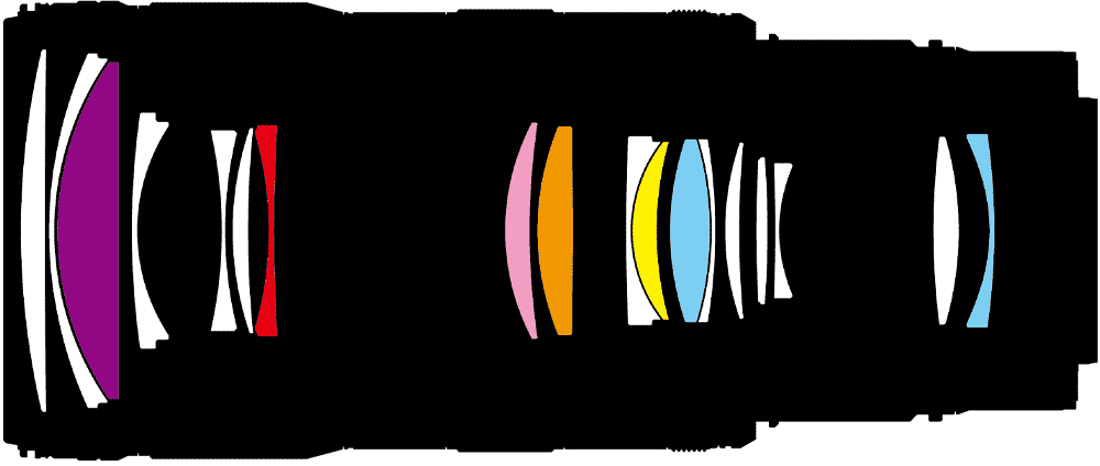 Optics specifications topInternal Optical Construction. Fluorite, Super ED, Short Wavelength Refractive, Aspherical ED, ED, Aspherical and plain-old- optical glass elements. 18 elements in 16 groups. Internal zooming: doesn't change length as zoomed. Nikon claims it doesn't shift its weight much as zoomed. Internal focusing: doesn't change length as focused. Internal zoom: doesn't change length as zoomed. CRC close-range correction, also called "multi-focus system," optimizes the lens design as focused at different distances. 1 Fluorite element for extreme sharpness. 2 plain-old Aspherical elements for extra sharpness. 1 regular ED element: magic Extra-low Dispersion glass for reduced axial secondary chromatic aberration. 1 Super ED element: Super magical Extra-low Dispersion glass for reduced axial secondary chromatic aberration. 1 Aspherical ED element, combining the benefits of plain-old Aspherical elements and regular ED elements. 1 Short Wavelength Refractive element to help reduce spherochromatism. Nikon Super Integrated multiCoating (SIC). Front fluorine coating to resist dirt and smudges. Meso Amorphous and ARNEO coatings.