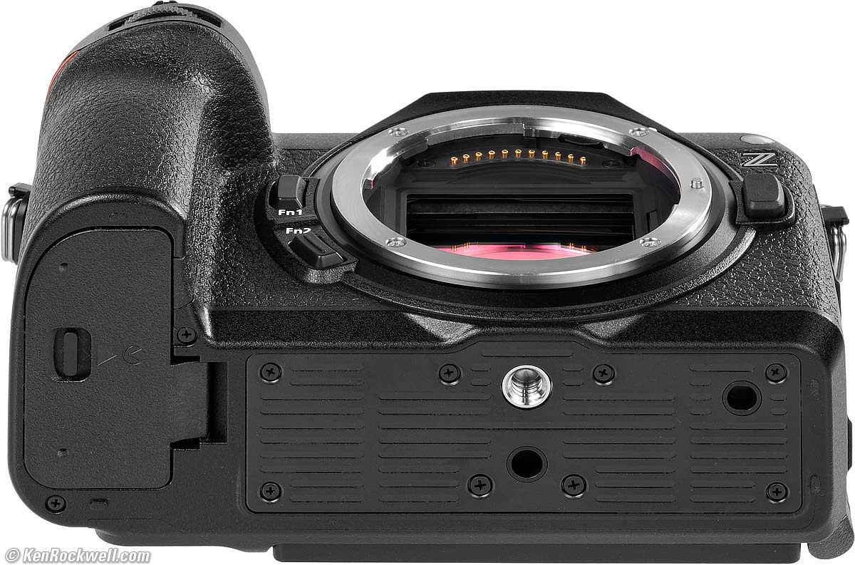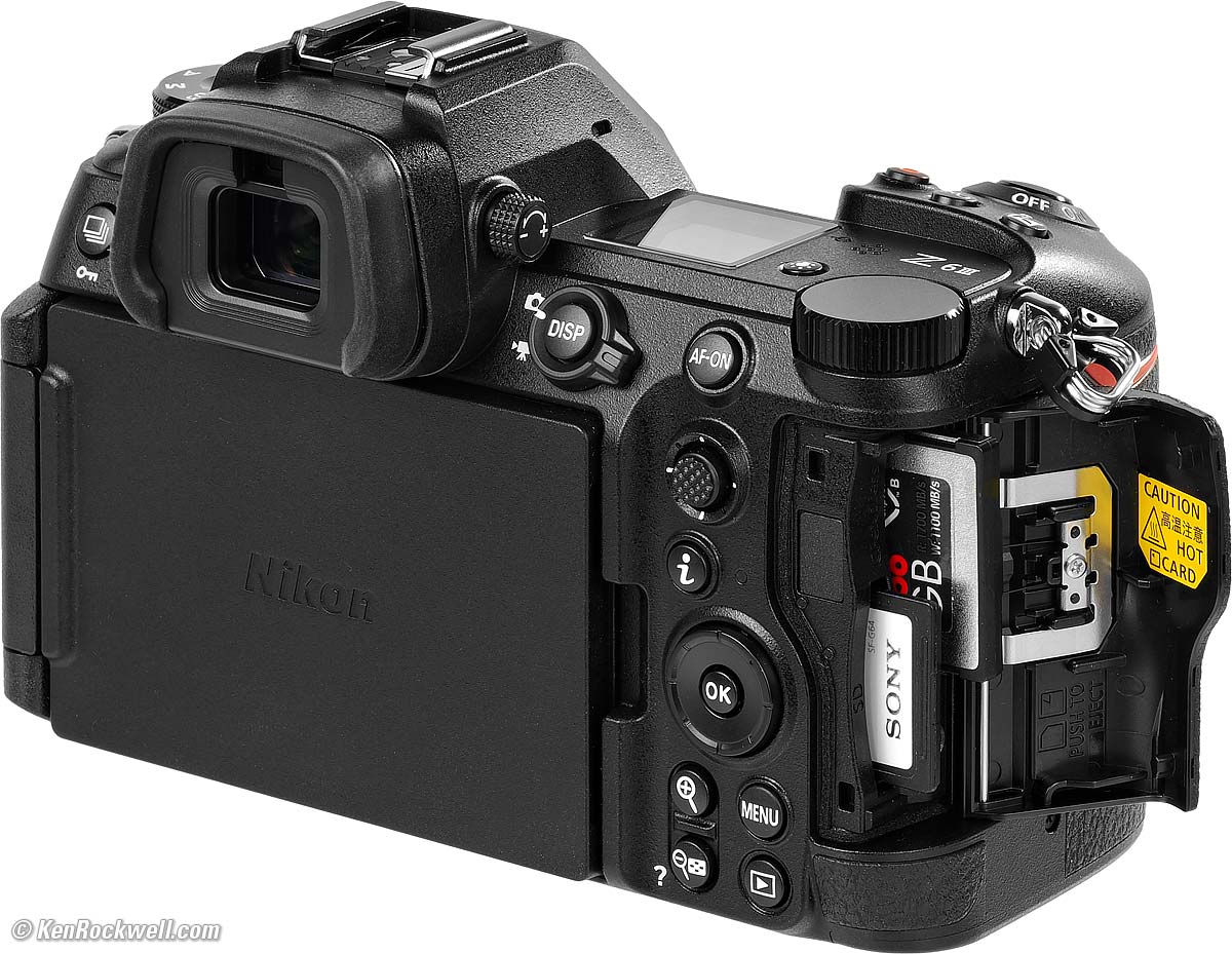 Connectors specifications topNikon Z6 III Connectors. bigger. All these connectors are covered by crappy plastic covers that flop around while you're using the connectors, and have to be snapped-in carefully when you're done so they stay down. In Nikon's publicity picture above, note how they deceptively have ripped-off the covers so you can see better. There is no door, there are usually plastic covers attached to the two holes at the upper-right of each column above, and if you pull-out the flaps as shown here, I suspect they won't reattach again.