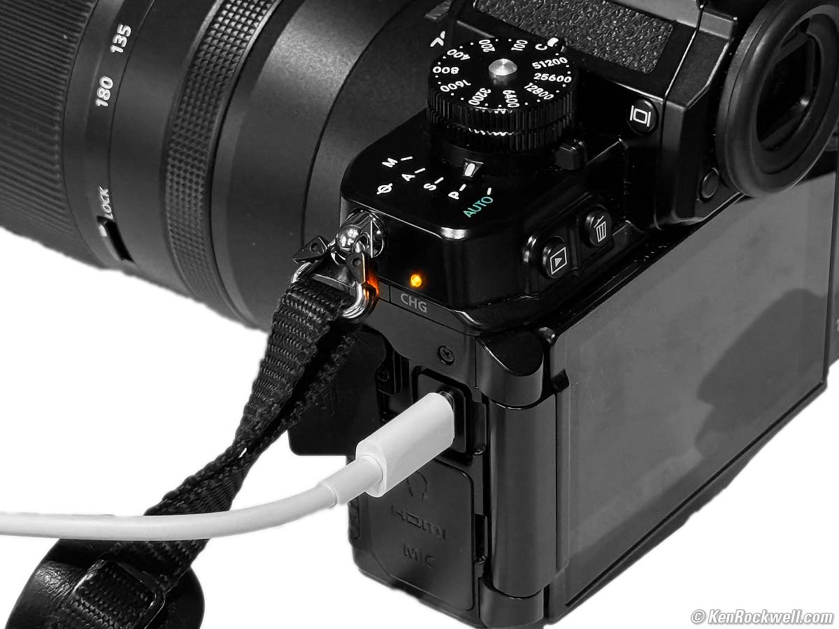 Charging & Power topYou can charge the battery the old-fashioned way in an optional Nikon MH-25a external charger, or plug the Zf into any USB-C source. My Zf charges from a USB-C charger, USB-C power bank, USB-C source in a car, solar panels or solar generators — but it only charges from USB-C sources, not USB-A. It won't charge from an older-syle (rectangular) USB-A source with a USB-A to USB-C cable; you have to use a USB-C to UCB-C cable. While I've not had a problem with any USB-C source, I've been told that the USB-C source must meet at least the PD (Power Delivery) 2.0 specification.