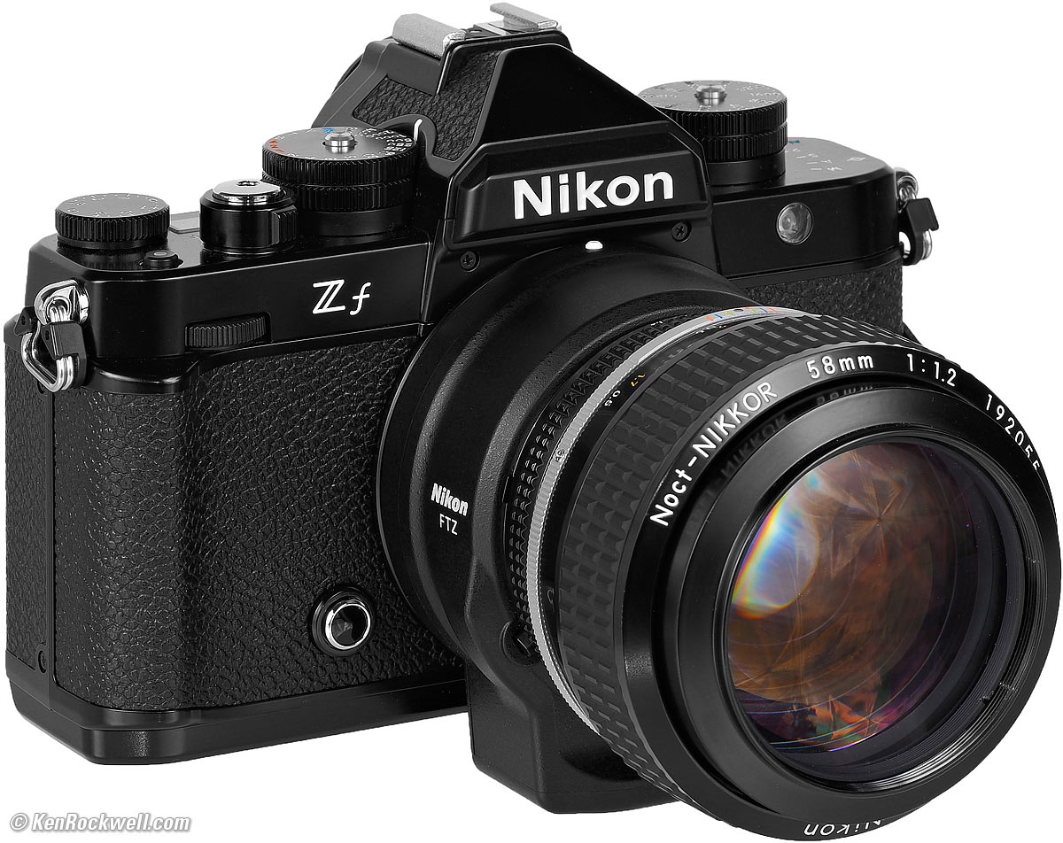 FTZ & FTZ II Adapters topNikon Zf with AF-S 8-15mm Fisheye on FTZ II. bigger. I have an entire page on what works and doesn't work with Nikon's FTZ and FTZ II adapters, which lets Nikon's F-Mount lenses mount - but not necessarily work well - on a Z camera. In short, only the newest AF-I, AF-S and AF-P lenses work well with Nikon's FTZ adapter, while there is no autofocus with any other lenses, and especially no autofocus with older AF and AF‑D lenses, many of which Nikon still sells new today. Nikon Zf and Noct-NIKKOR 58mm f/1.2s on FTZ. bigger. Manual-Focus F, AI converted, AI and AI‑s like the Noct-NIKKOR 58mm f/1.2s shown above mount, but don't work very well. They have no communication or proper control of aperture. Manual-focus lenses work much better on any FX DSLR than on the FTZ; shoot these on a DSLR for the best experience. See all the details at Nikon FTZ Compatibility & Review.
