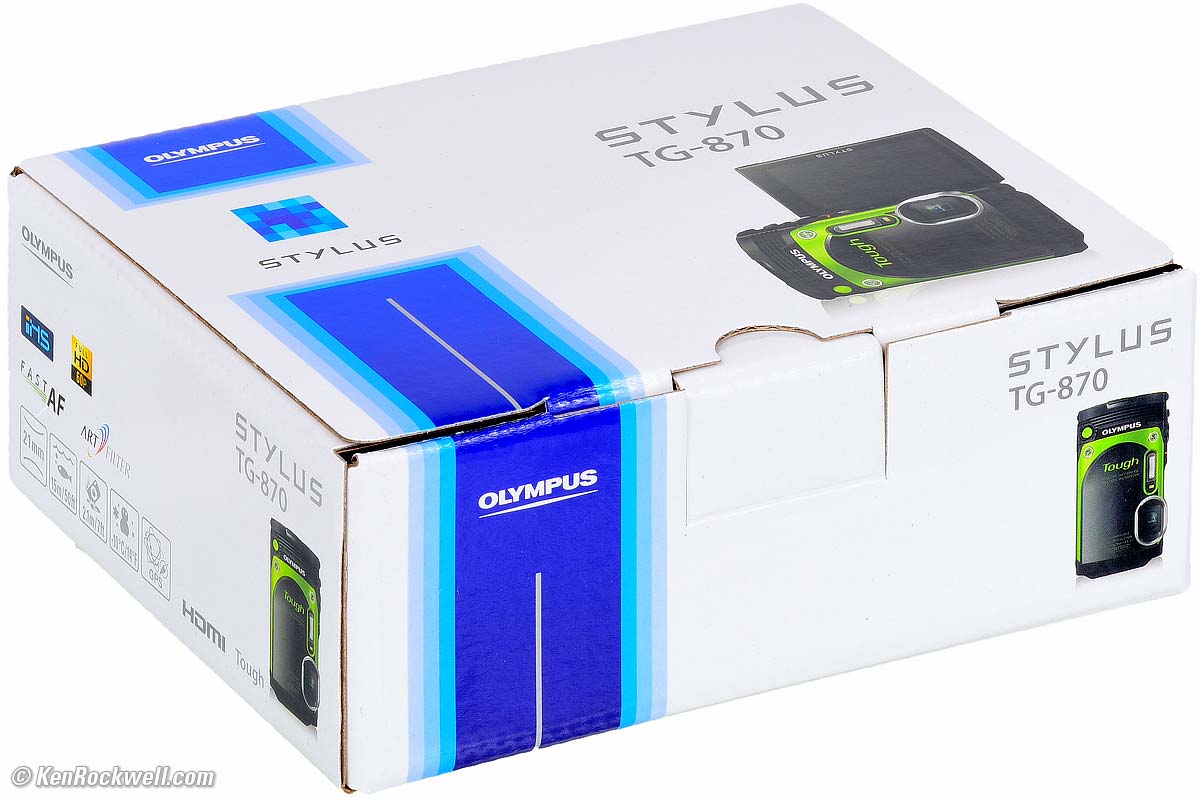 Olympus TG-87015m/50' Underwater Camera, 21~105mm equivalent lensSample Images Intro Specifications Accessories Performance Compared Olympus TG-870 (16 MP, 7.7 oz./220g with battery and card, about $229) bigger. I got mine at B&H. I'd also get it at Adorama, at Amazon or at Crutchfield. This all-content, junk-free website's biggest source of support is when you use those or any of these links to my personally-approved sources when you get anything, regardless of the country in which you live. Olympus does not seal its boxes in any way, so never buy at retail or any other source not on my personally approved list since you'll have no way of knowing if you're missing accessories, getting a defective, damaged, returned, store demo or used camera. Buy only from the approved sources I use myself for the best prices, service, return policies and selection. Thanks for helping me help you! Ken.