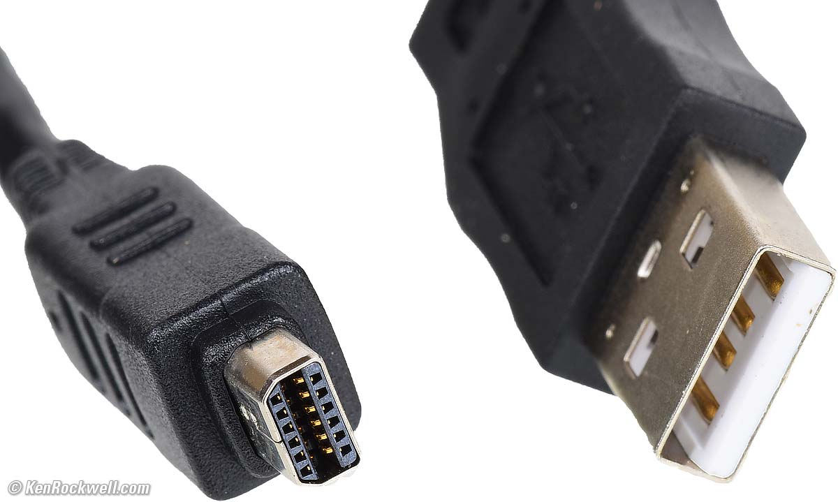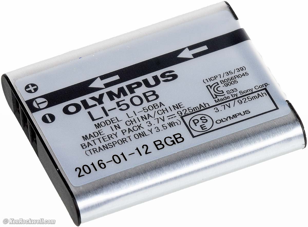 Power & BatteryI had no problem shooting all day and still having a mostly full battery. It only charges via USB, and it only connects to USB with a special included Olympus USB cable. Standard USB cables do not work. Don't lose the cable that comes with the camera or you won't be able to charge your battery until you replace it. Olympus Dedicated USB Cable. Note special camera connector on left. bigger. It draws 950 mA charging a mostly dead battery. The current tapers off gradually as charged. Rated 2 hours for a full charge from a completely dead battery, which seems about right. It will usually charge much faster with partly discharged batteries.