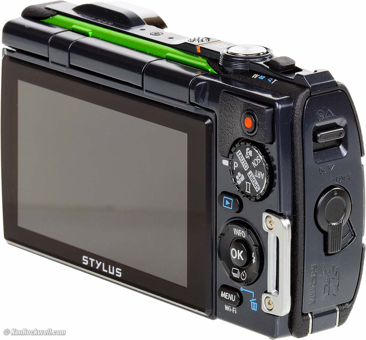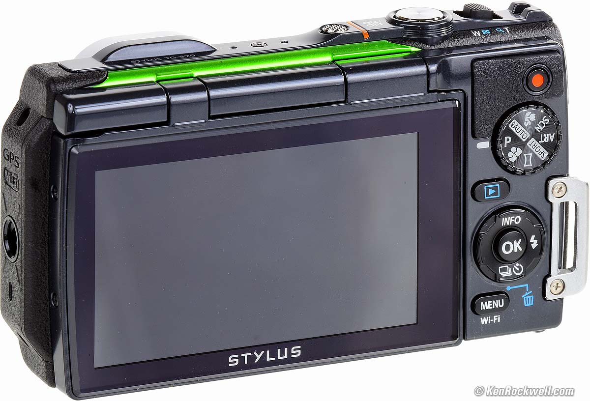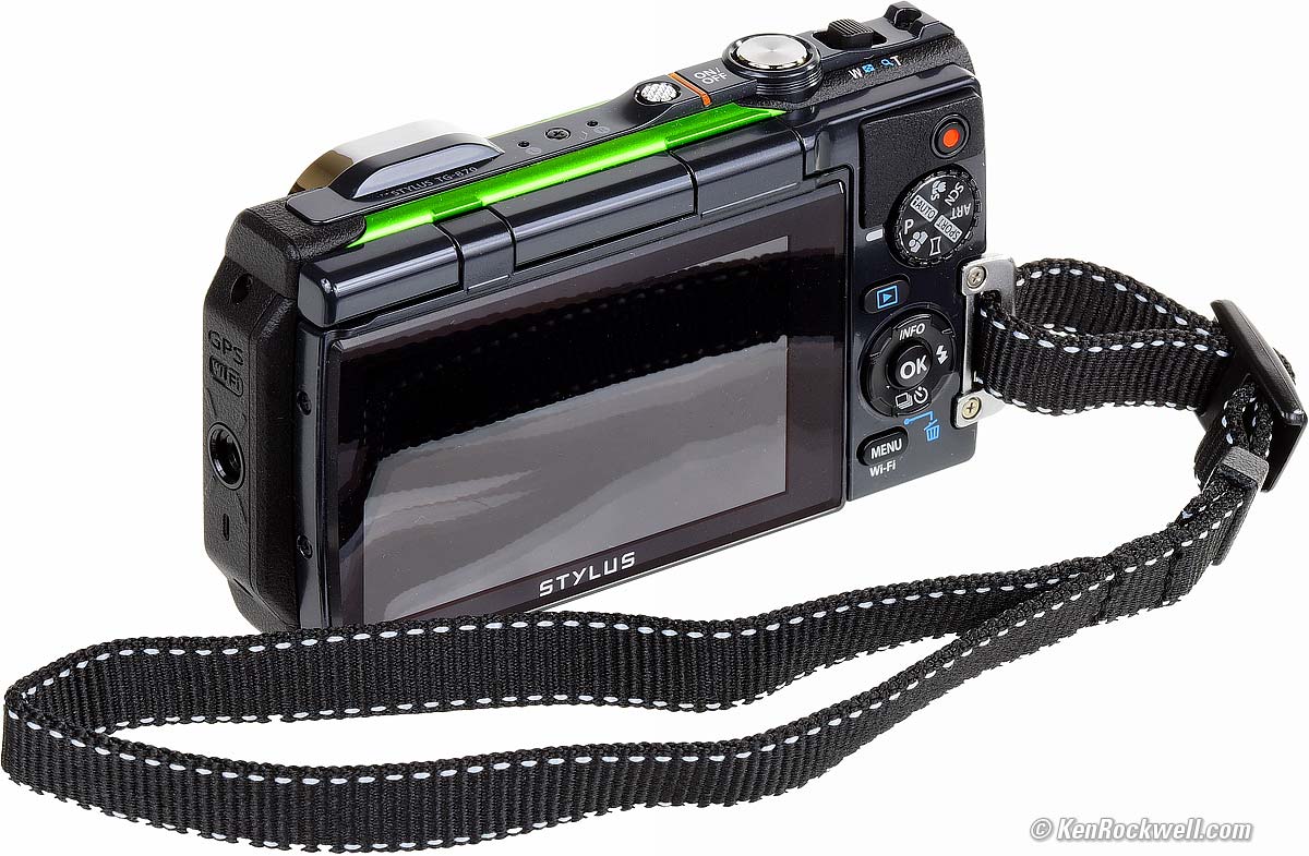 Bad● Dim LCD makes it hard to see what you're doing in daylight, especially with water drops on the LCD. There's a Daylight mode, but it constantly cancels itself. ● The images on the LCD are small, with only about a 2" effective diagonal and black bars on either side because it's a chopped 16:9 LCD. ● Not smart enough to rotate playback images as you turn the camera like an iPhone. ● Olympus uses a proprietary USB connector. Standard USB cables will not connect, and that's the only way this camera charges. ● Can't shoot stills while rolling video.