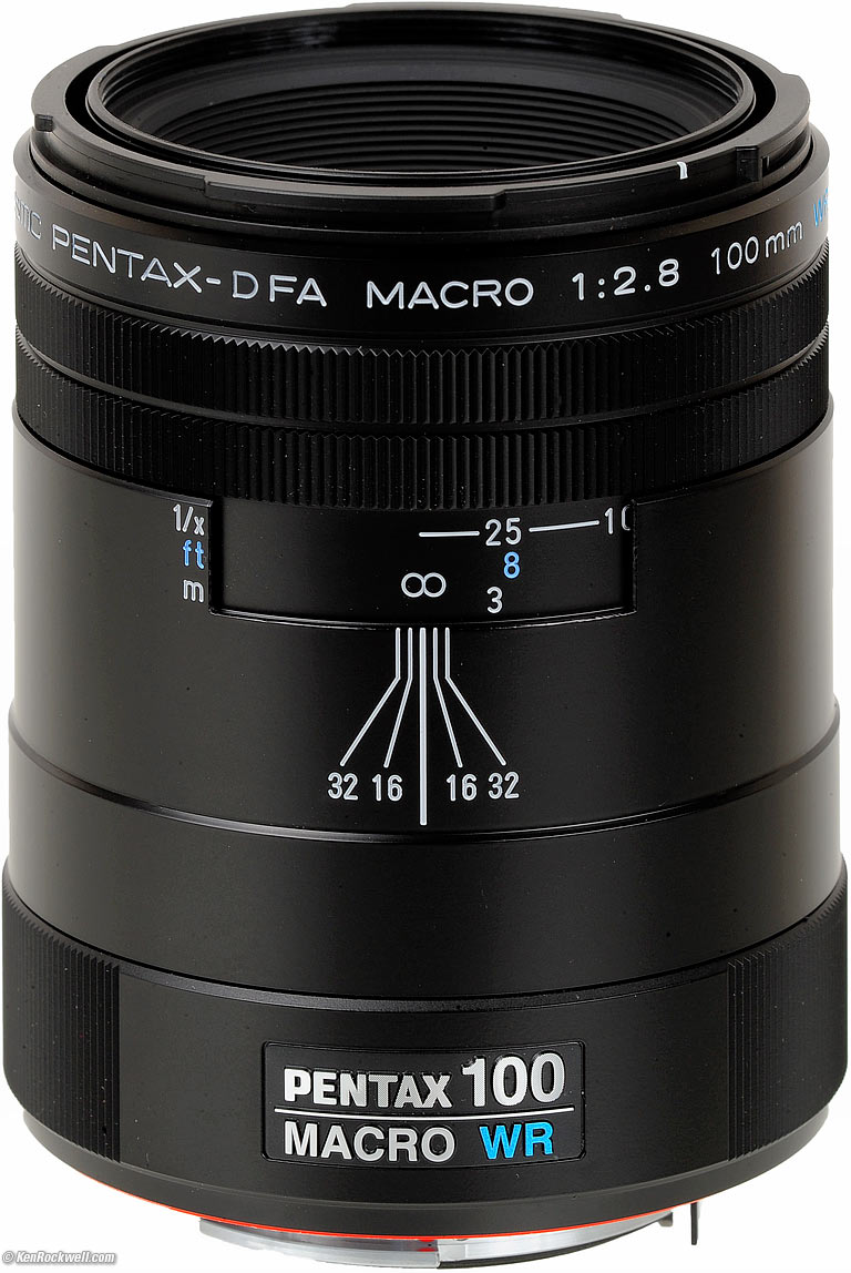 Recommendations top Intro Specs Performance Recommendations This is a great little lens for any Pentax. It's small, sharp, fast, light and tough. It offers essentially perfect optical performance and is the world's smallest and lightest 100mm macro lens. If you find my work here helpful, my biggest source of support for this free website is if you get yours at B&H, at Adorama or at Amazon. When you use those or any of these links to approved sources when you get anything, regardless of the country in which you live, it helps me keep adding to this free website — but I receive nothing for these efforts if you take the chance of buying elsewhere. Unlike a bottle of milk or a CD, DVD or Blu-Ray disc, Pentax doesn't seal its boxes so you have no idea if you're actually getting a used product if you risk buying at retail. Never buy at retail.