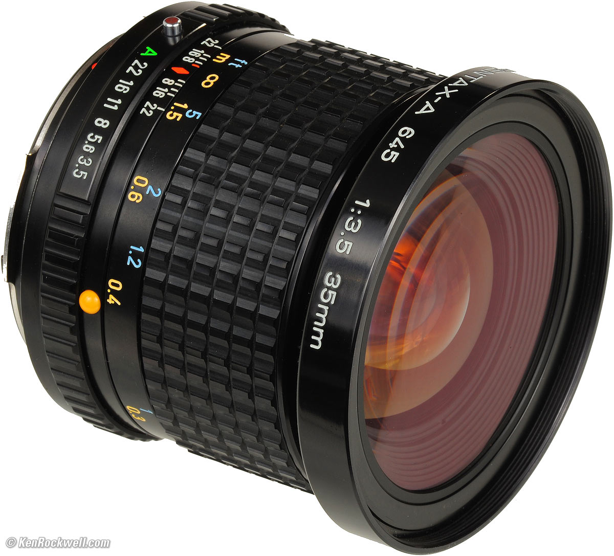 Home New Search Gallery How-To Books Links Workshops About Contact Pentax 645 35mm f/3.5 Intro Specs Performance Usage Recommendations SMC Pentax-A 35mm f/3.5. enlarge. I got mine at eBay. It helps me keep adding reviews of this old stuff when you use these links to get yours, Thanks! Ken.