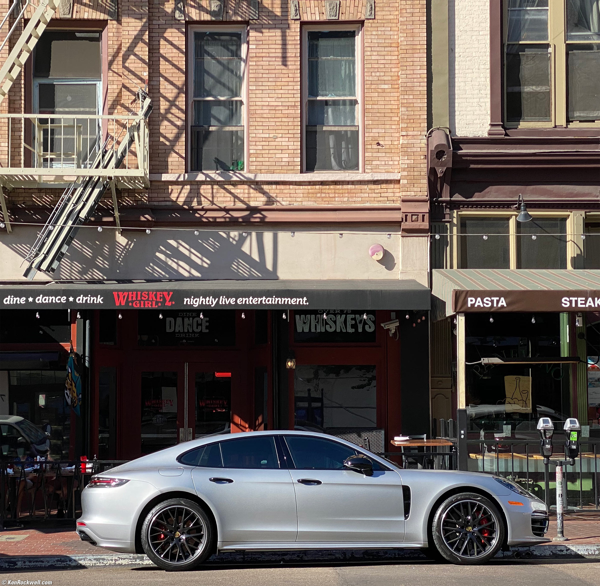 2018 Porsche Panamera Turbo in GT silver and gloss black. Shot with Nikon Z7 and Nikon Z 24-200mm VR at 140mm at f/6.3 at 1/40 hand-held at Auto ISO 180 (LV 9.8), Perfectly Clear. bigger or full-resolution file.