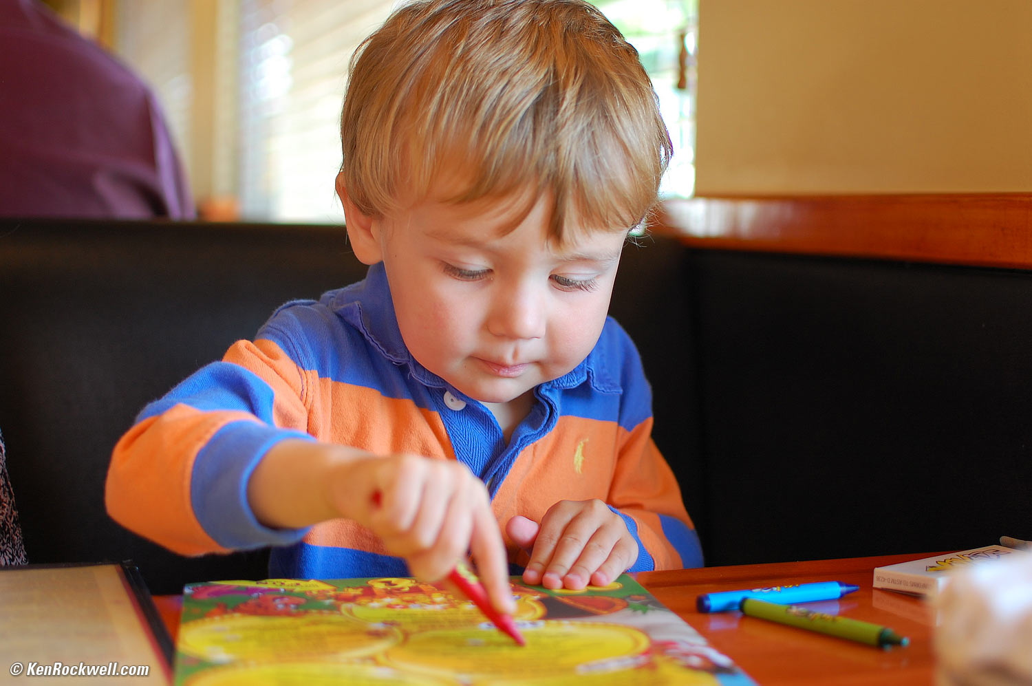Ryan and His Coloring. (Minolta CLE, Leica 40mm f/2, f/2 at 1/60 (auto), Fuji Reala 100, NCPS process and scan.)