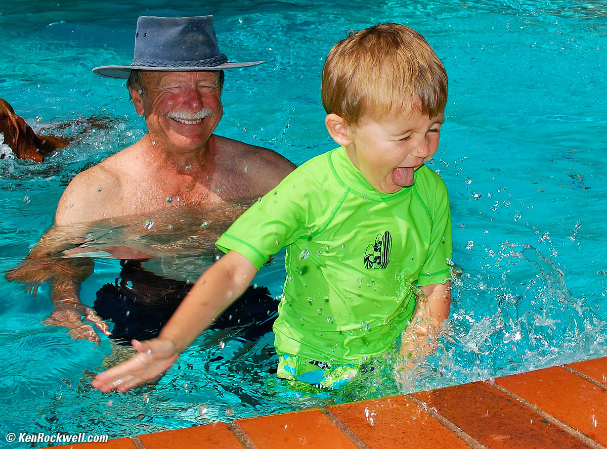 18 June 2009, Thursday Ryan headed to Noni's pool again, and spent about an hour and a half in the water with Dad. First, Ryan wanted to be lifted up and dropped into the water — about a thousand times: