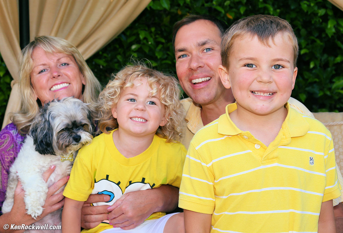 Yay! Mr. and Mrs. KenRockwell.com, Molly, Katie and Ryan all survived the party! (Canon 5D Mark III, 220EX flash, EF 28-105mm USM II at 105mm, AUTO ISO 400, f/7.1 at 1/200, AUTO A4 WB, 4 sharpening, 1 saturation, Perfectly Clear.) smilier.