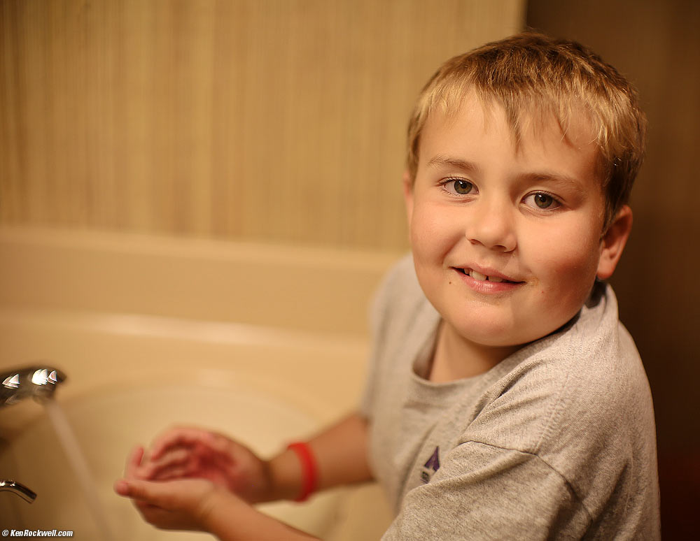 Ryan washing his hands. Canon 5D Mark III, Canon EF 50mm f/1.0 L USM, f/1.4 at 1/125 at Auto ISO 200.) full-resolution.