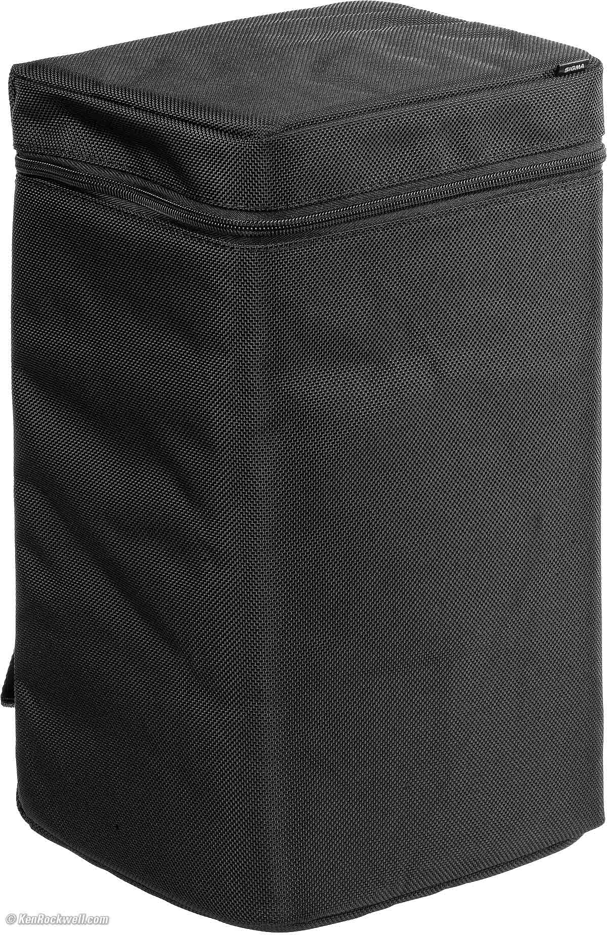 CapsSigma 60-600mm HSM Sports. bigger. Padded nylon front cover and standard rear cap included. The padded front cover velcros-on as shown here with the hood reversed. It also covers the front with the hood mounted for use. There is also a standard snap-in plastic 105mm cap in the bottom of the box if you prefer.
