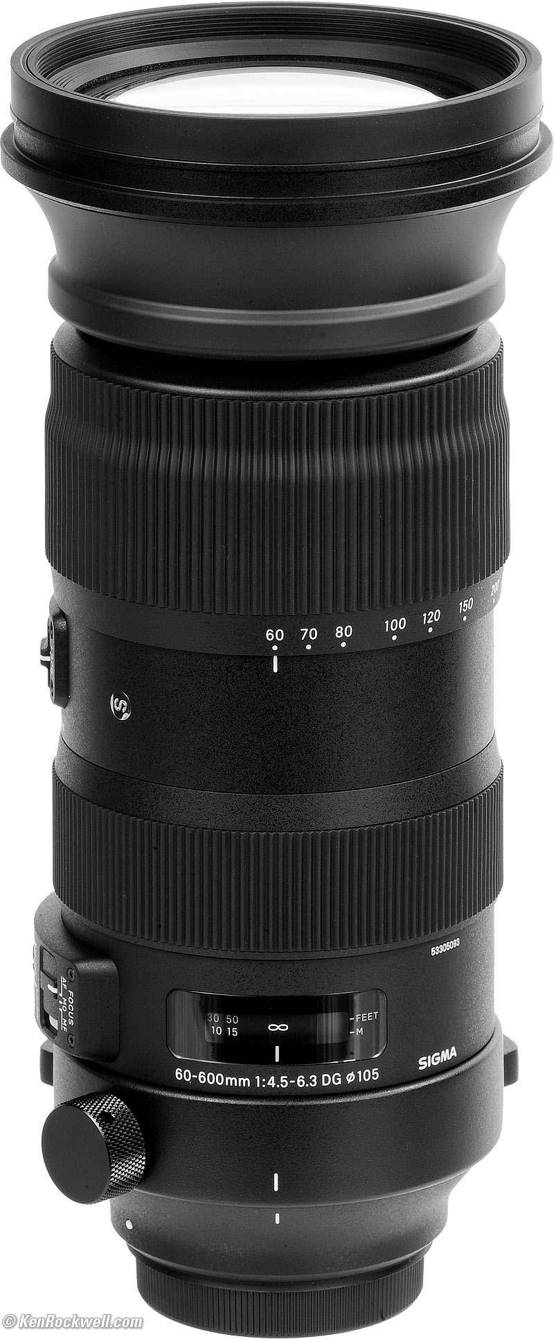 Serial NumberSigma 60-600mm Serial Number. bigger. Engraved and filled with paint just above the focus scale.