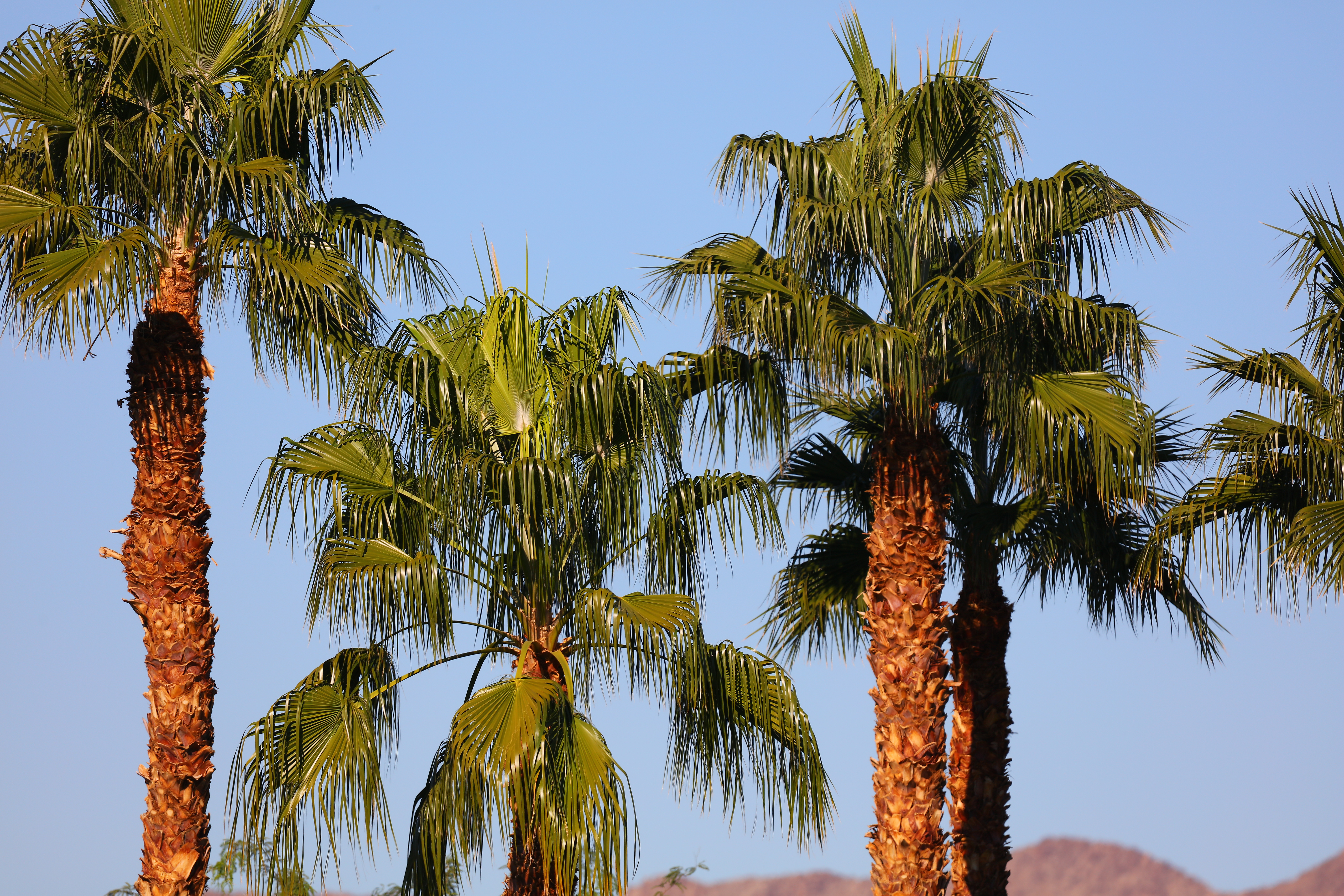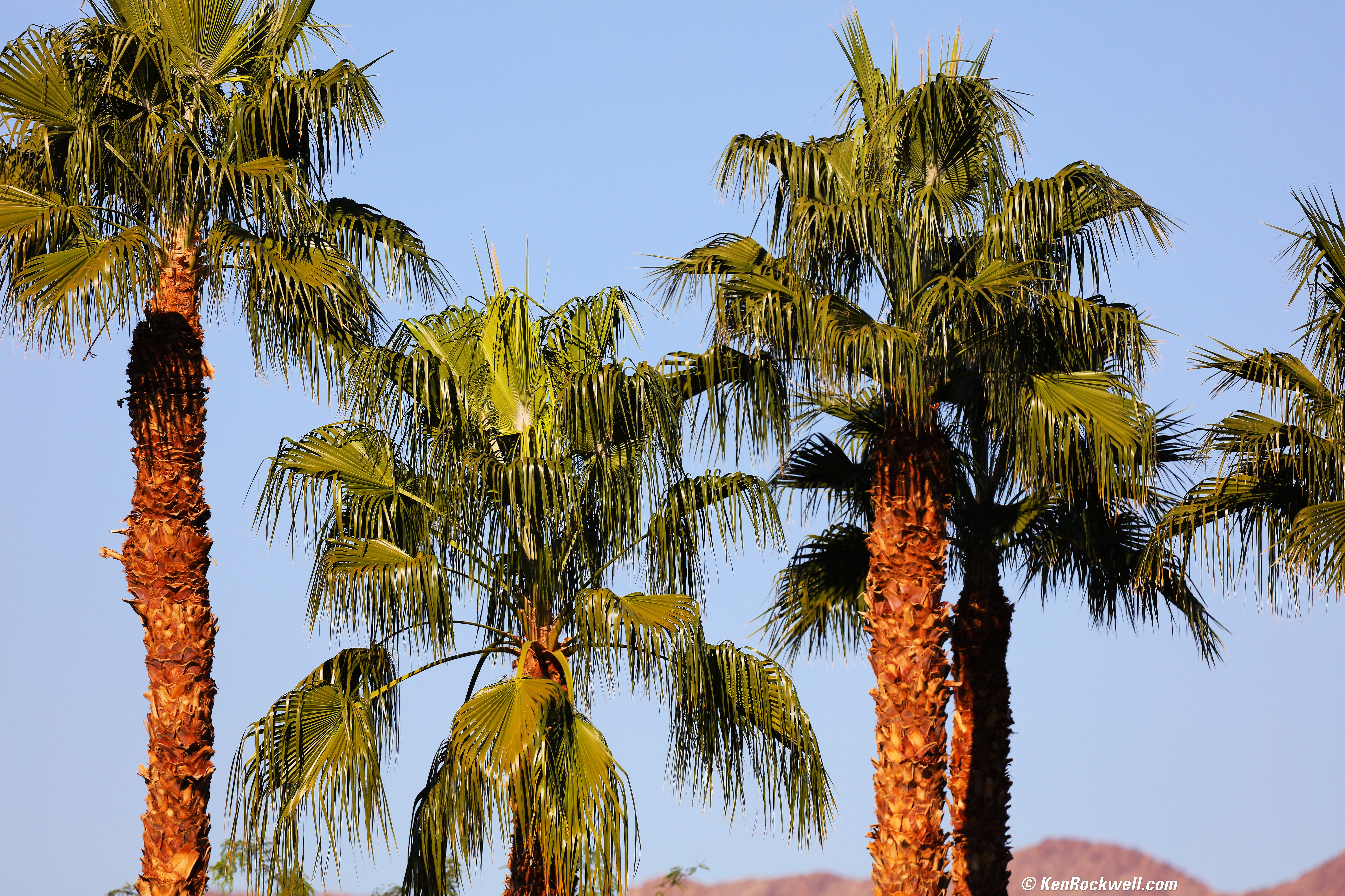 Palm at 600mm, 12 November 2018. Canon 5DS/R, Sigma 60-600mm set to 186mm, f/8 hand-held at 1/500 at Auto ISO 100, Perfectly Clear. bigger, full-resolution or camera-original © file. This are real 3-D trees, so only the front fronds are actually in focus. The trunks are farther away and not in focus.