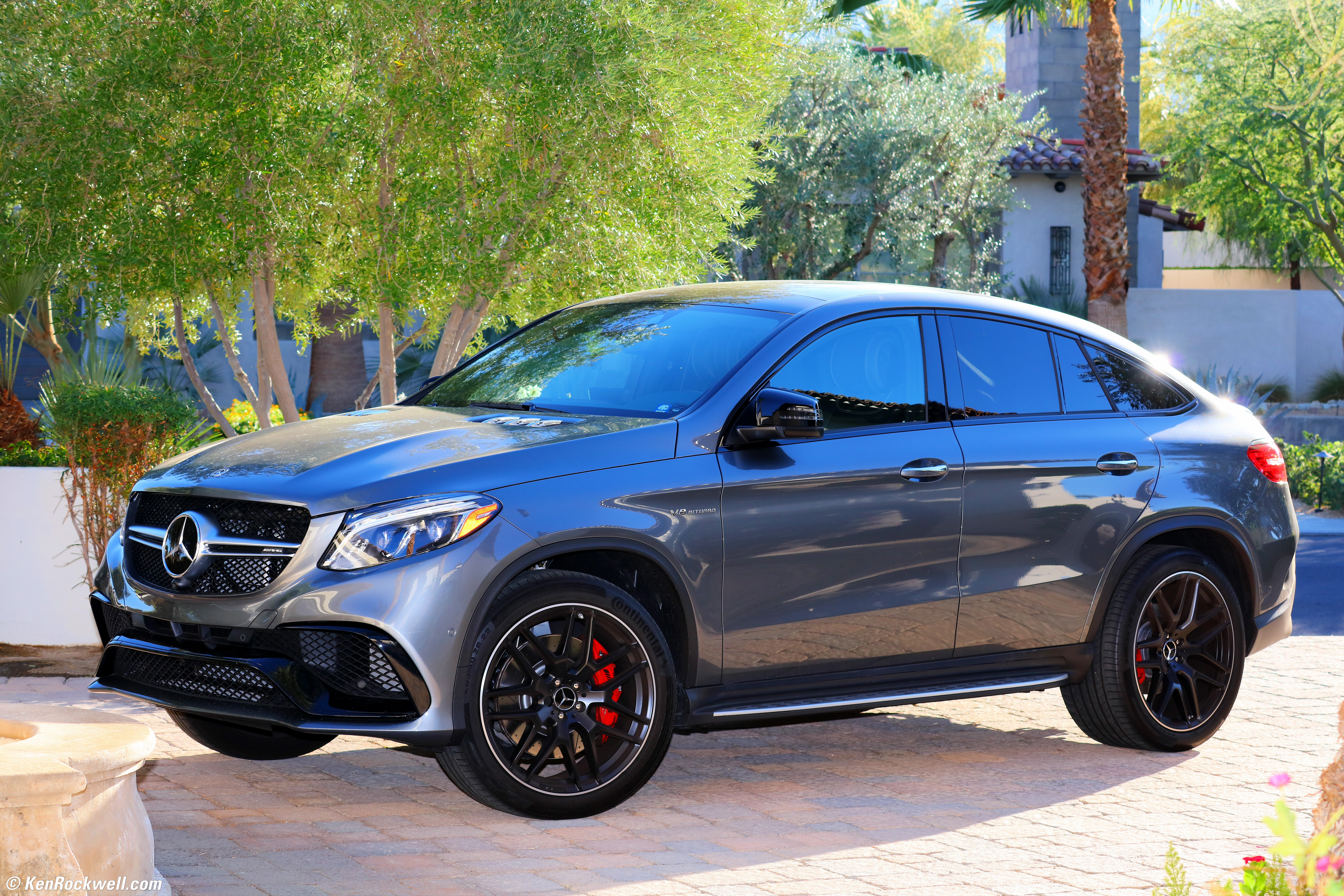 Mercedes AMG GLE 63S Coupe at 85mm, 12 November 2018. Canon 5DS/R, Canon 580EX II flash, Sigma 60-600mm set to 85mm, f/9 hand-held at 1/200 at Auto ISO 400, Perfectly Clear. bigger, full-resolution or camera-original © file. I'm focused on the front wheel, so the far side of the grille and the back of the car and trees are not in focus. IntroductionTop Sample Images Intro Format Compatibility Specifications Accessories Unboxing USA Version Performance Compared User's Guide Recommendations