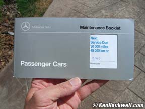 This booklet should always be with your car. It lists when service is required, and has places to be stamped for each service. It forms an easy reminder of when to bring your SL500 in for service as seen through the front, and also serves as an important one-stop record to allow you to examine the car's service history since new. Never buy an SL500 without this booklet. I got my SL500 as a certified pre-owned and of course it came with this booklet. The booklet shows me instantly where and when the SL500 was serviced and even where it was bought. It showed me I had a well maintained car from my local area and was always serviced at the same dealer. I've gotten this booklet for every Mercedes we've ever bought. The good ones all have it. On rare occasion an owner may have forgotten to have the book stamped here or there. In that case when we bought our SLK we simply drove to the dealer who looked it up on his computer and stamped our book after we bought the car. People trying to sell crappy cars have all sorts of stories about why this book might be missing. I'd rather have a car missing a door, which I can replace, than one missing its records. The real story behind SL500s missing books is probably because the car missed its services, too! Today the stories usually involve some baloney like "privacy" or whatever. Remember: no book, no sale. When I exceeded the mileage covered by the book for my Diesels I simply bought a replacement at the dealer's parts department and had that stamped for each ongoing service.