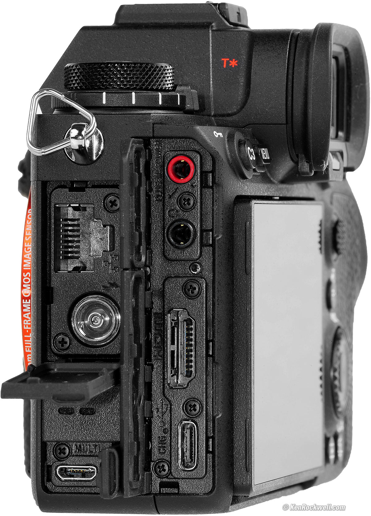 Sony A1. bigger. From Top Left: Ethernet 1000/100/10 Base-T. Prontor/Compur (PC) flash sync terminal "Multi," which is both a Micro Super-Speed 10 Gbps USB 3.2 as well as Sony's analog A/V interface.