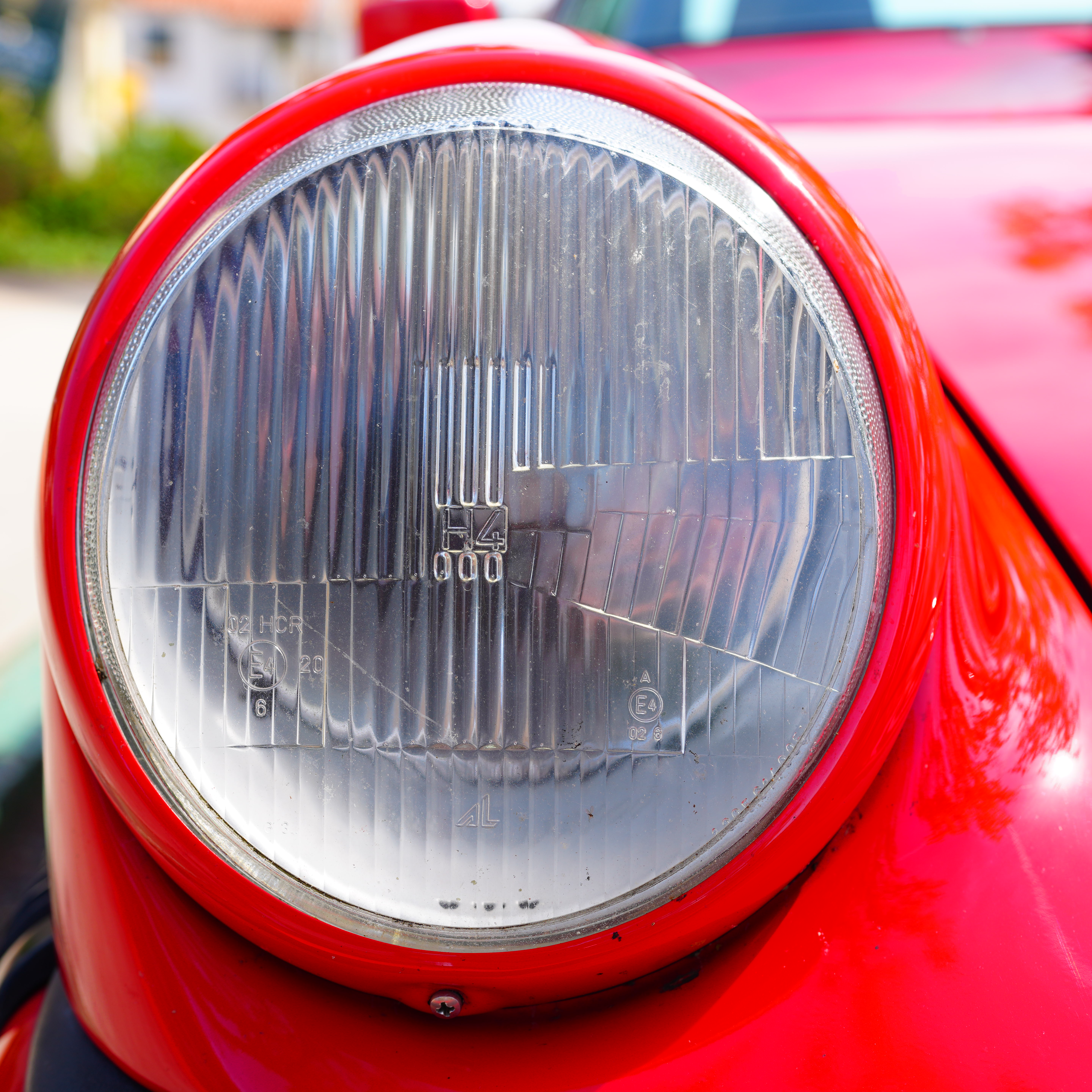 H4 Headlight Lens, Guards Red Porsche 911, 10:32 AM, 01 May 2021. Slight crop from Sony A1 in square crop mode, VV Creative Look with +9 Saturation, Sony FE 35mm f/1.4 GM at f/4 at 1/320 at Auto ISO 100, +0.7 stops exposure compensation (LV 12.3), exactly as shot. bigger or camera-original © LIGHT JPG file.